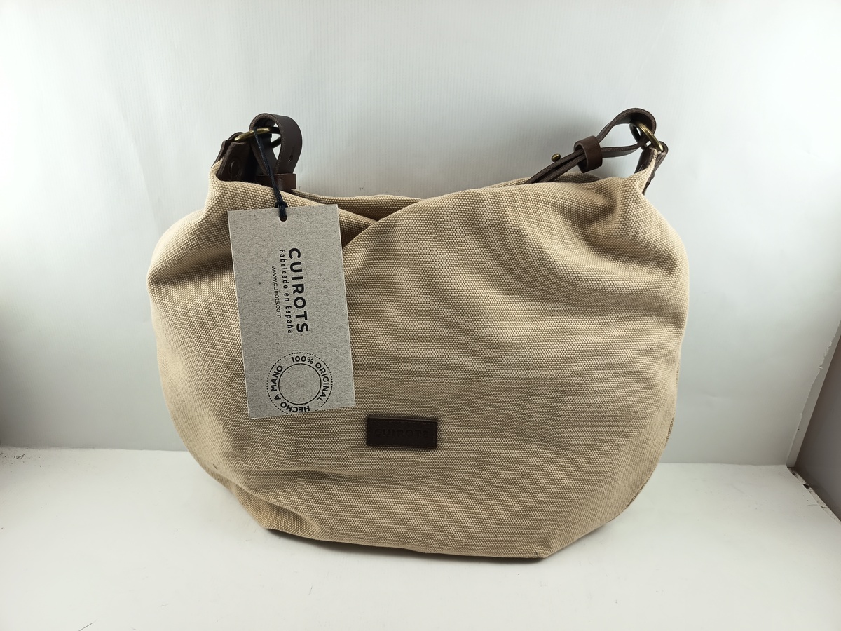 Bolso hobo mediano crema con cierre de cremallera, varios departamentos interiores.
