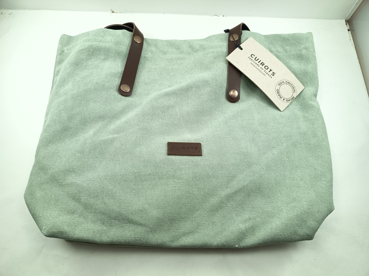 Bolso shopper sintetico verde con cierre de cremallera, varios deparamentos interiores.