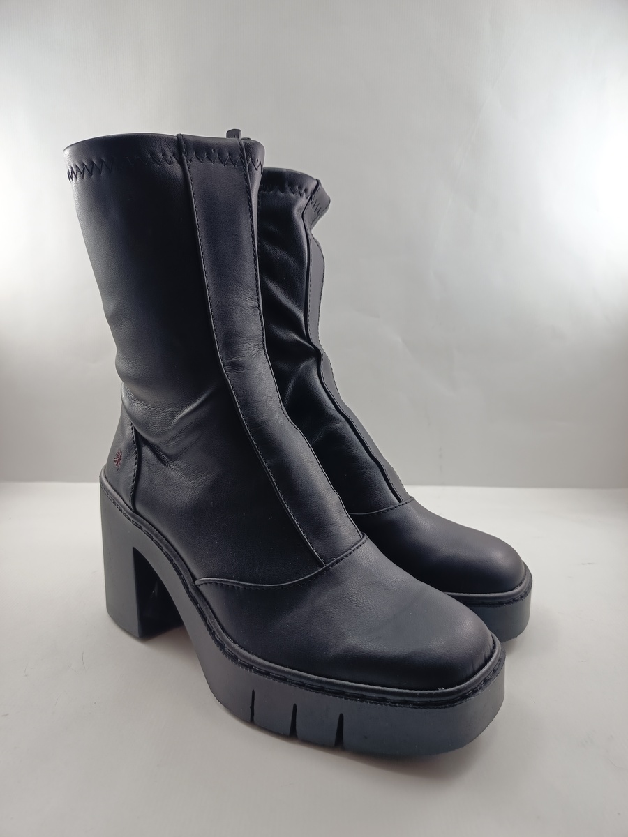Bota de piel negra sin cierres y suela de goma con tacon de 3, forro y plantilla de piel.