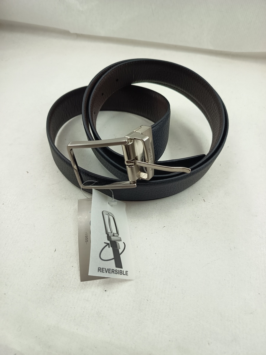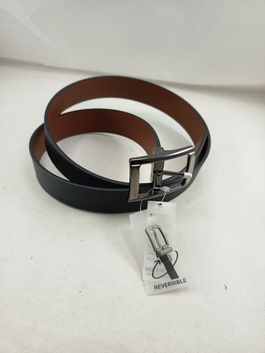 Cinturon de piel cuero con cierre de hebilla reversible.