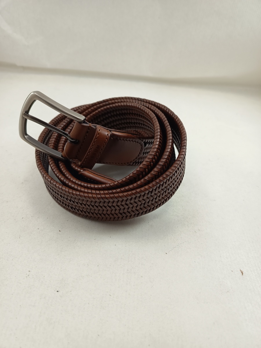 Cinturonde piel cuero con cierre de hebilla y detalle de trenzado en todo el.