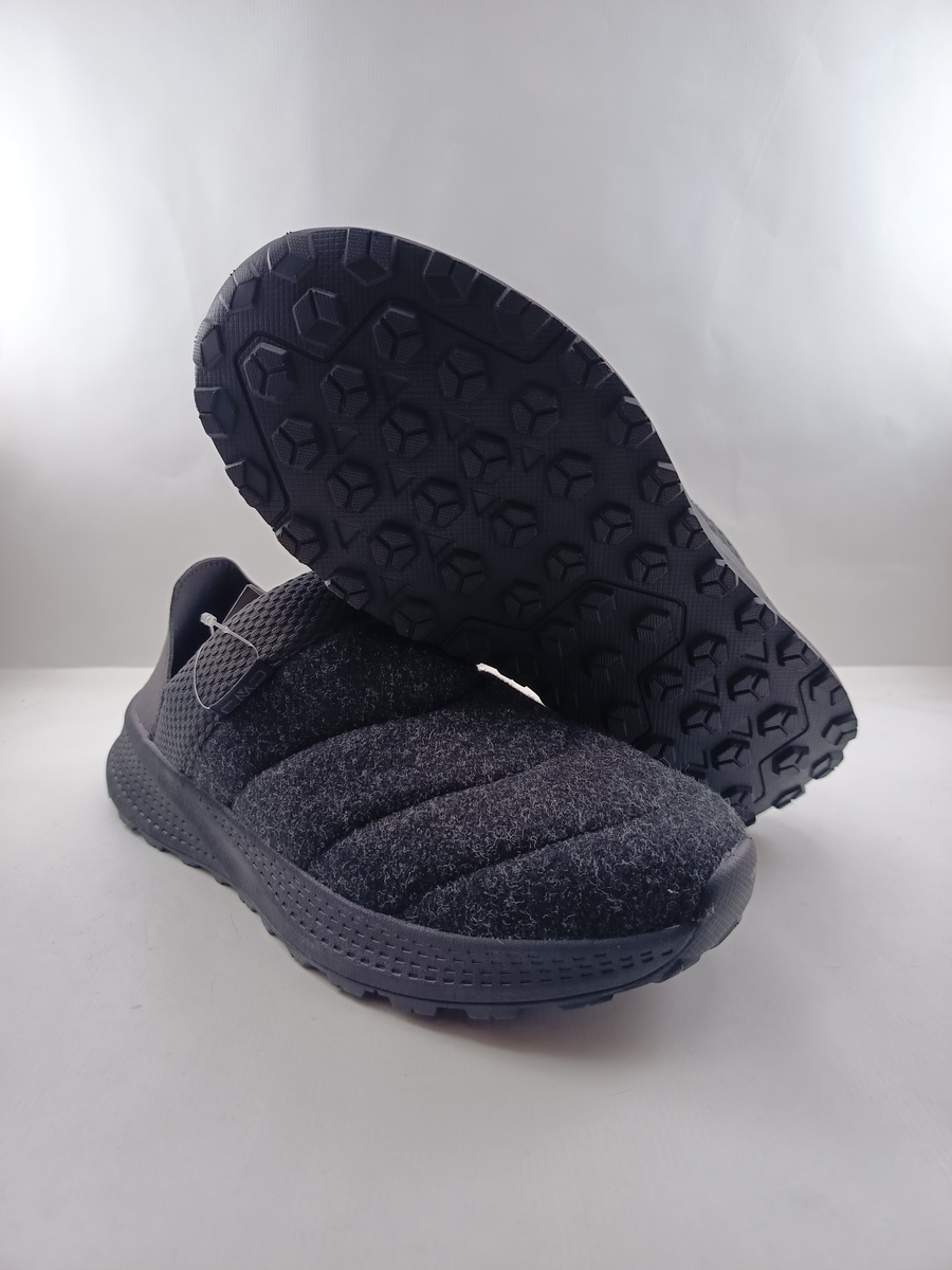 Zapatilla de casa sintetica negra sin cierres tipo chancla y suela de goma, forro y plantilla peludita.