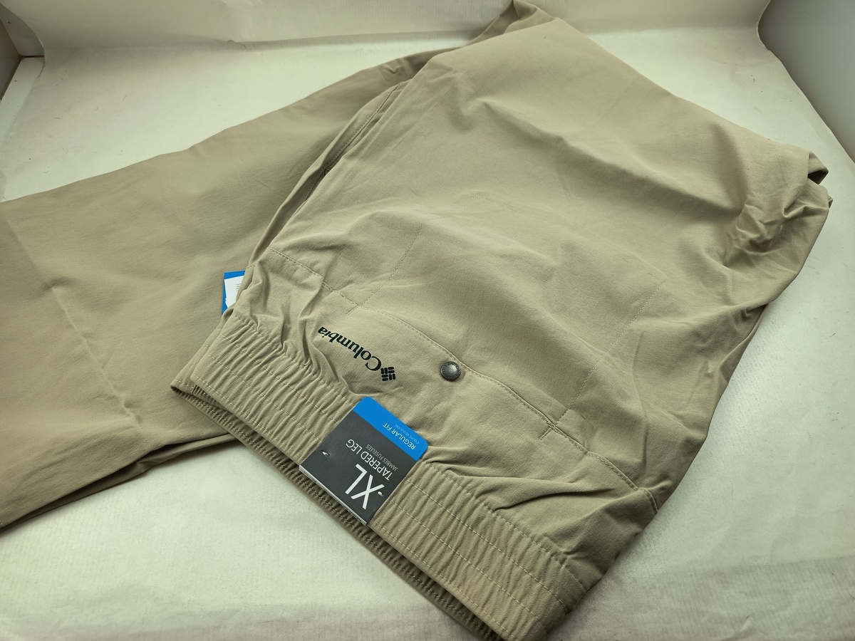 Pantalon sintetico camel con cierre de crec y goma elastica en cintura.