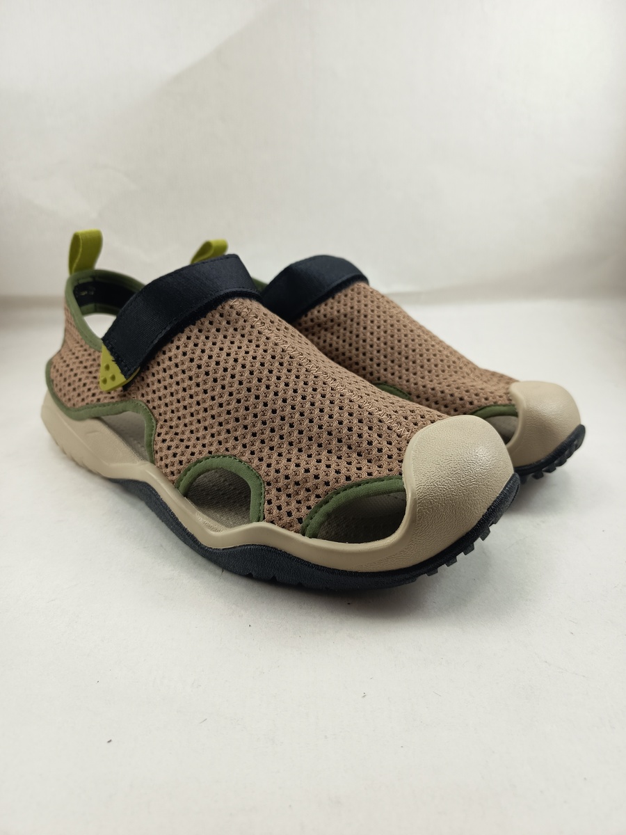 Croc swinfwater textil marron con cierre de velcro y suela de goma.
