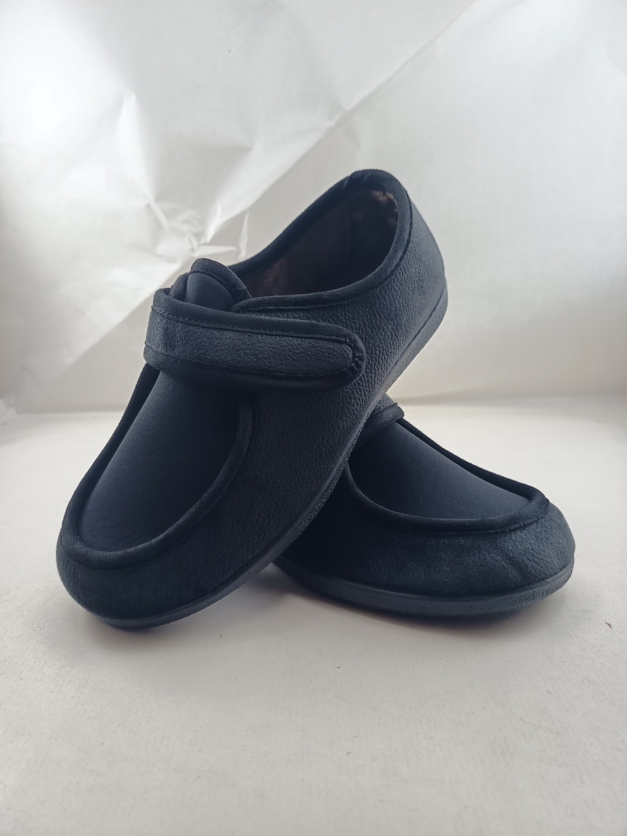 Alpargata sintetica negra con cierre de velcro y suela de goma, forro y plantilla textil.