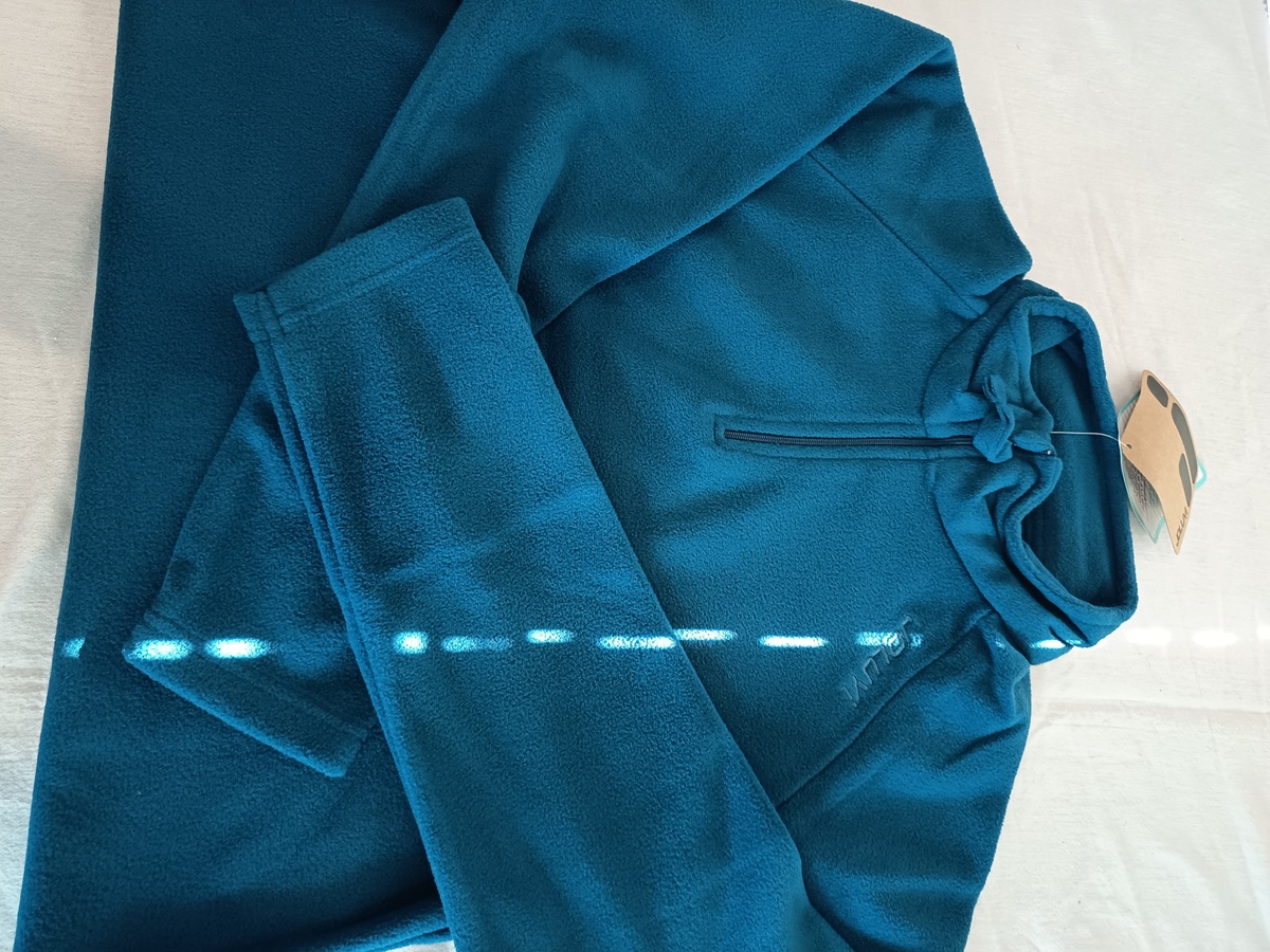 Polar sintetico azul con cierre de cremallera en cuello y sin puños.