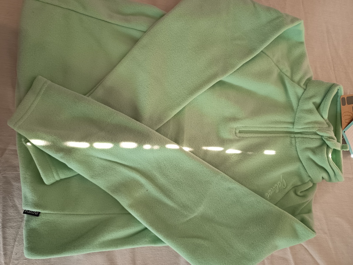 Polar sintetico verde con cierre de cremallera en cuello y sin puños.