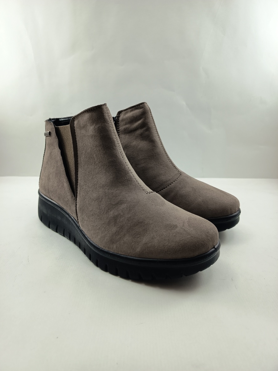 Bota de ante camel con cierre de cremallera y suela de goma, forro y plantilla de piel