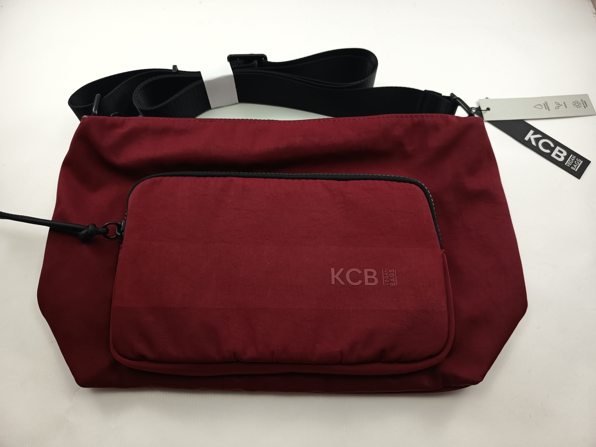 Bandolera pequeña sintetica roja con cierres de cremalleras y varios departamentos interiores.