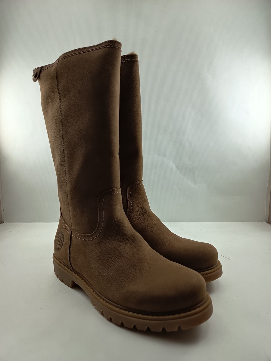 Bota de nobuck camel sin cierres y suela de goma, forro y plantilla peludo.