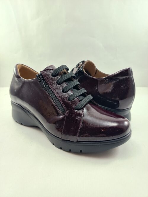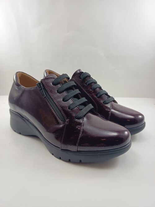 • Abotinado de charol granate con cierre de cordon y cremallera, Piesanto mod. 255855