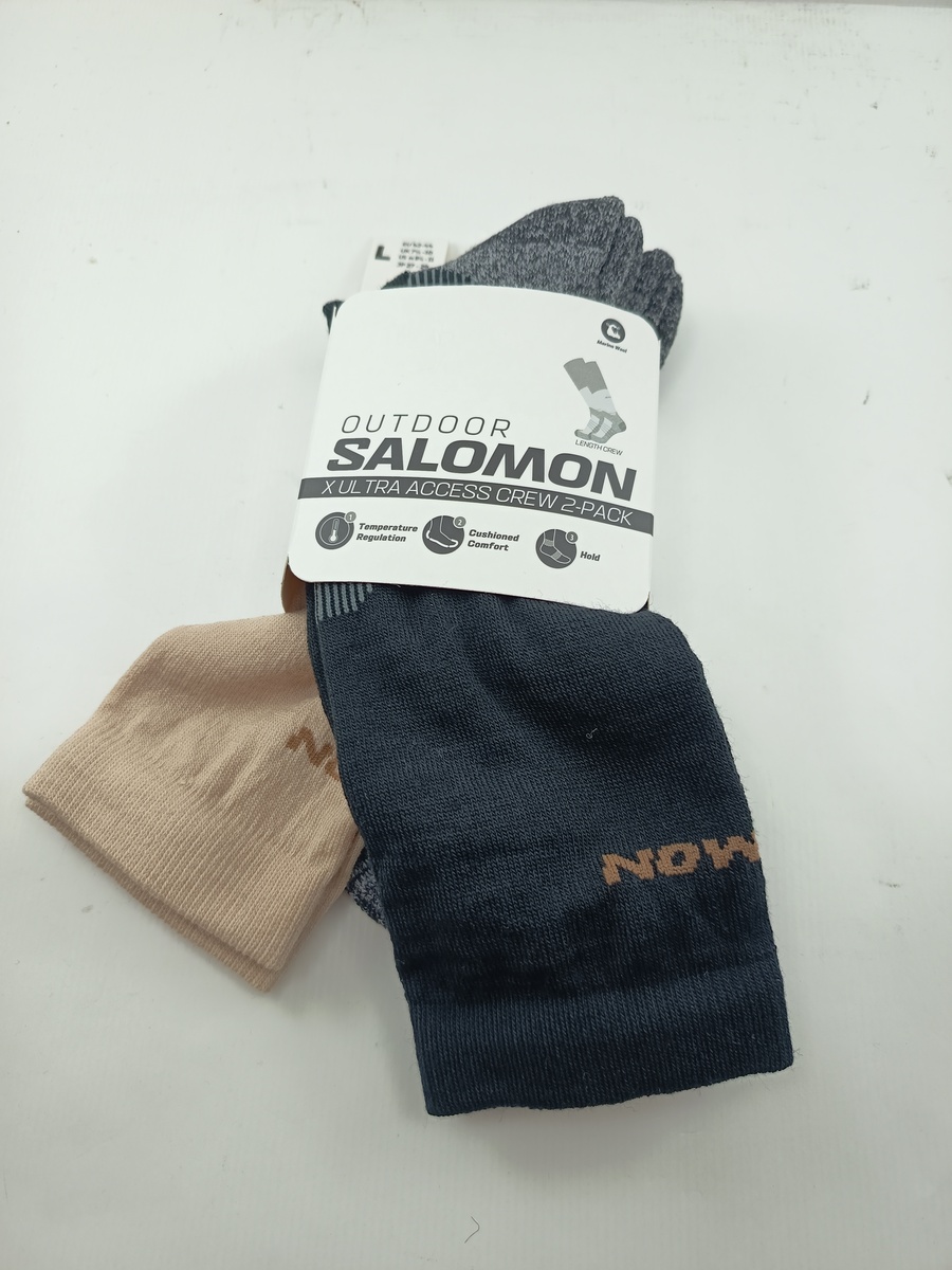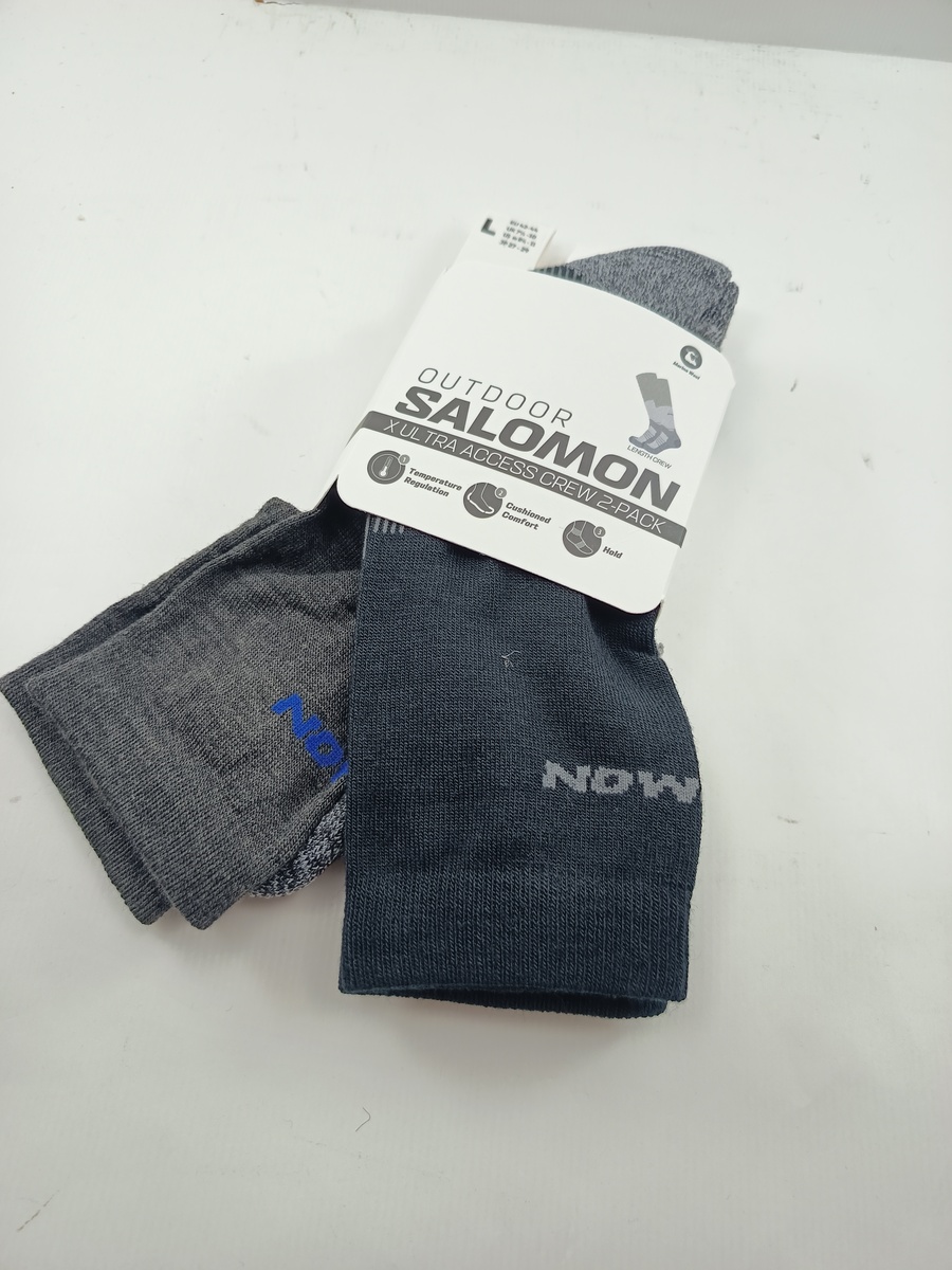 Calcetines sinteticos negros y gris con goma elastica en pierna y detalle de la marca.