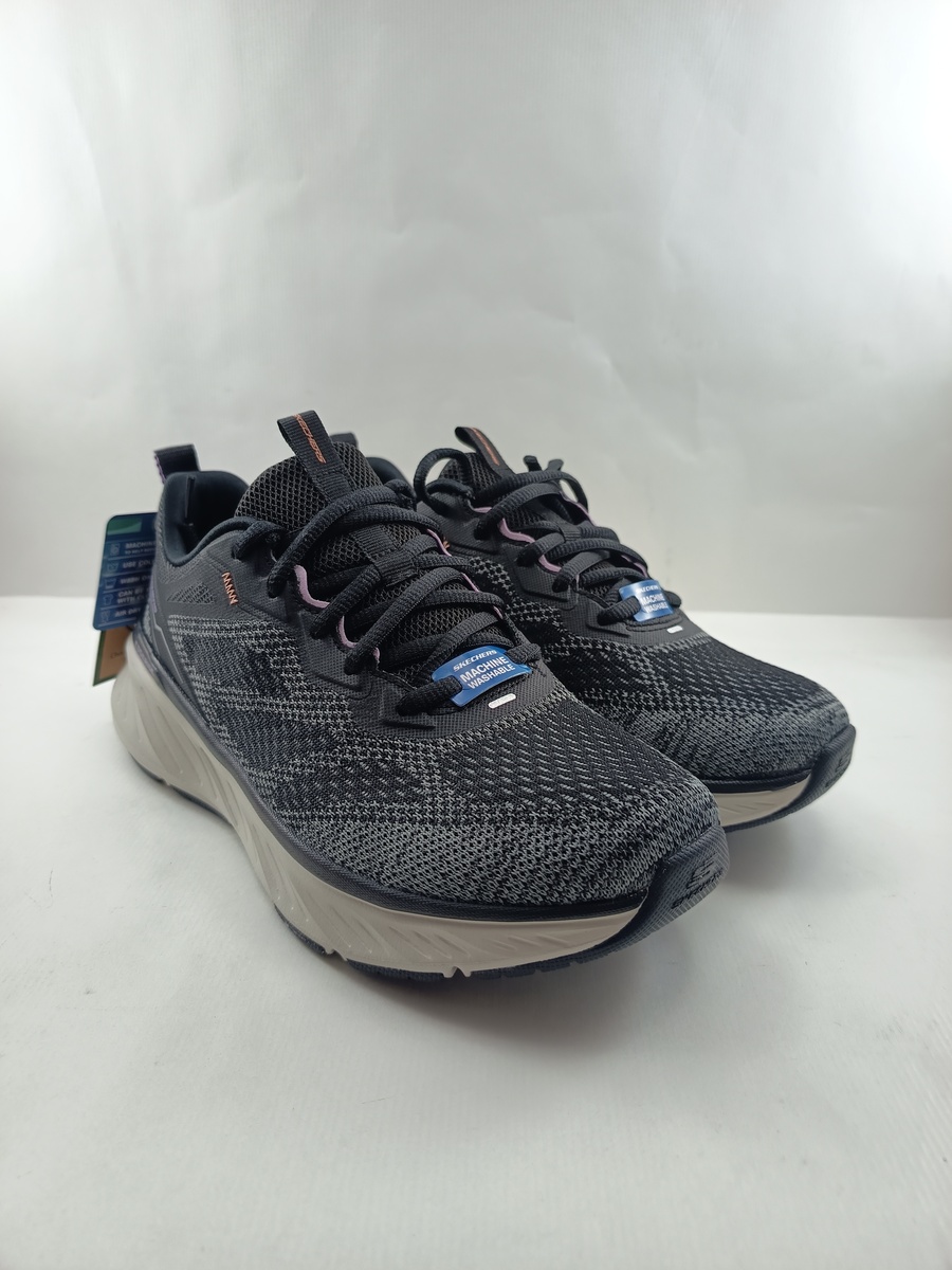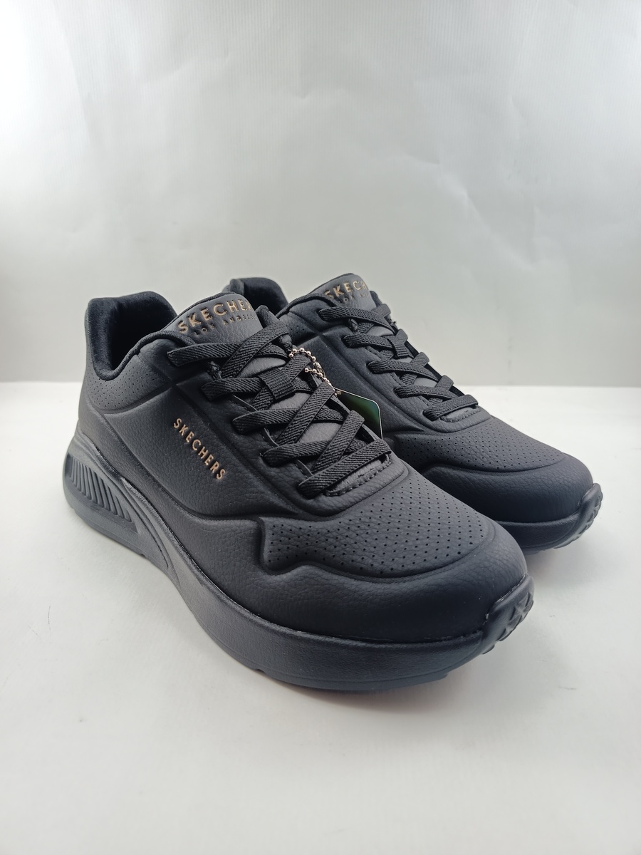 Semi-sport sintetico negro con cierre de cordon y suela de goma, forro y plantilla textil, detalle de la suela en blanco.