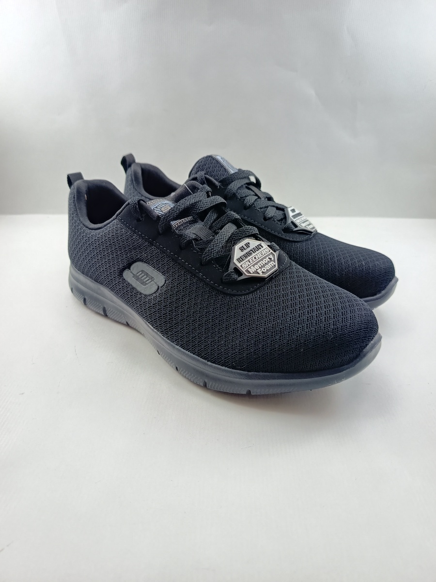 Deportivo sintetico negro con cierre de cordon y suela de goma negra, forro y plantilla textil, ideal trabajol, detalle de la marca en lateral.