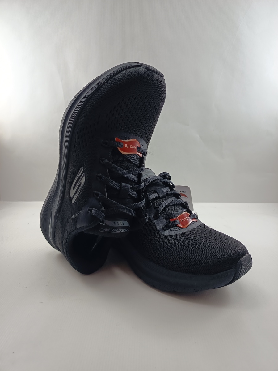 Semi-sport sintetico negro con cierre de cordon y suela de goma, forro y plantilla textil, modelo ultraligero.