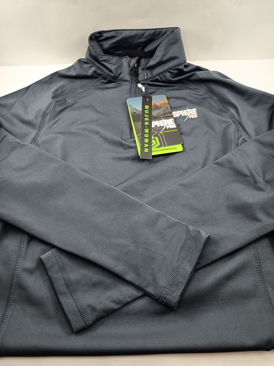 Camiseta manga larga sintetica gris con cierre de cremallera en cuello.