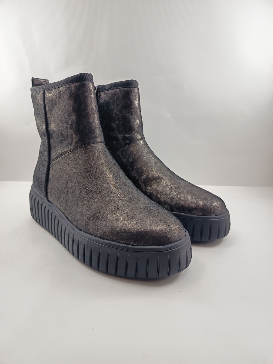 Bota de piel multicolor con ciierre de cremallera y suela de goma, forro y plantilla textil, detalle de leopardo en toda ellla.