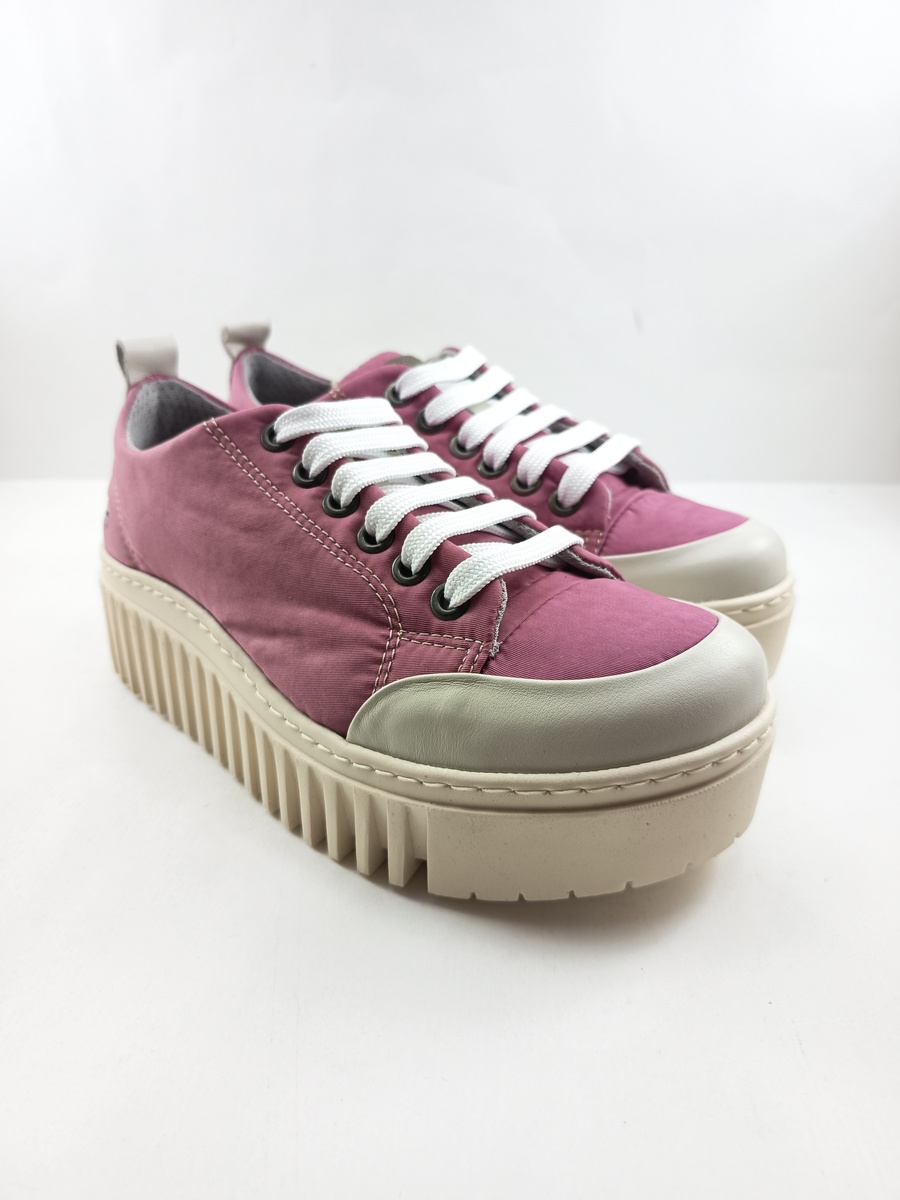 Semi-sport sintetico rosa con plataforma gruesa y acanalada combinando funcionalidad y diseño, horma comfort, plantilla extraible de microfibras, con cosido de 360º para mayor resistencia.