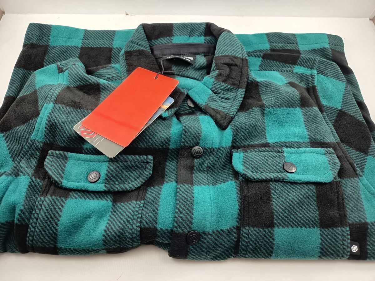 Chaquetaa sintetica verde con cierre de botones y bolsillos laterales en pectoral.