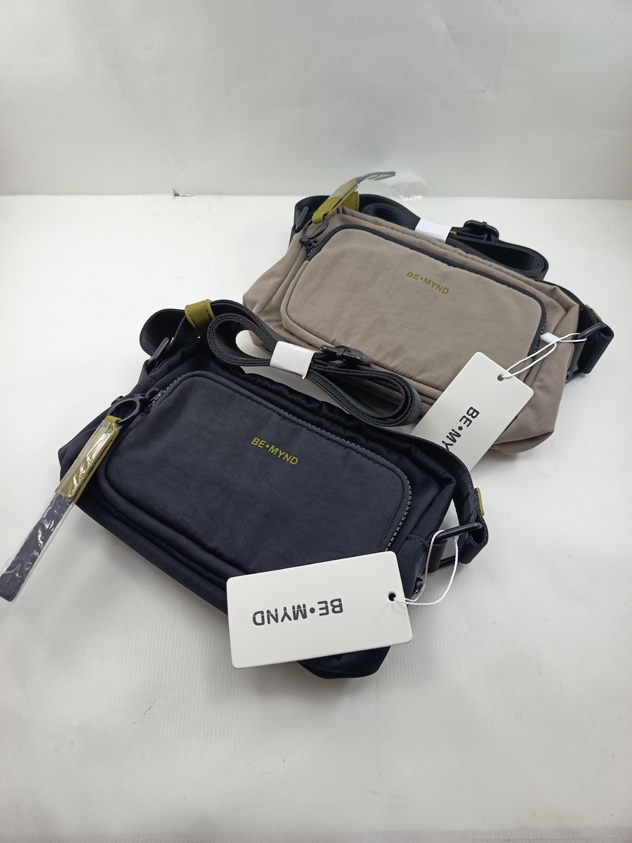 Bandolera pequeña de piel en varios colores y cierres de cremallera, varios departamentos interiores.