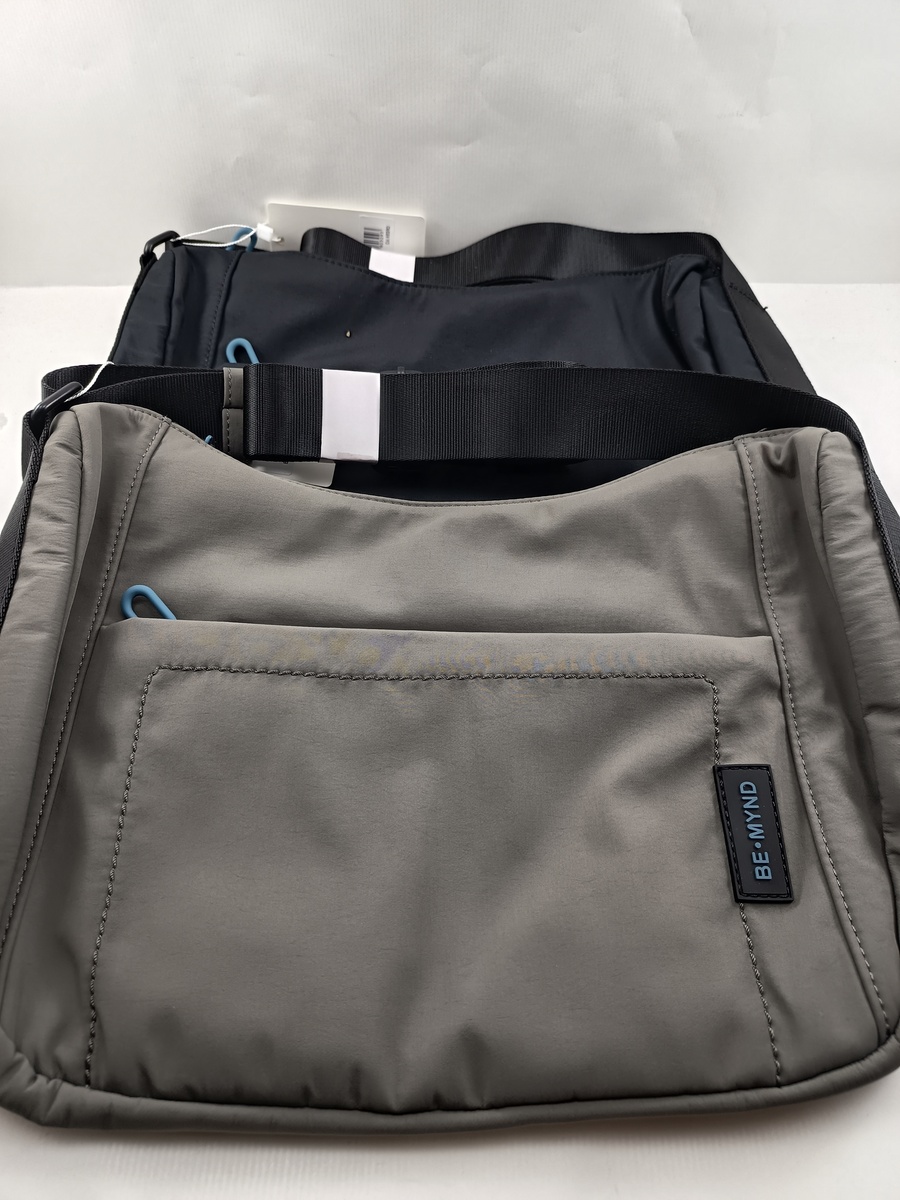 Bandolera sintetica en varios colores y cierres de cremallera con varios departamentos interiores y exteriores.