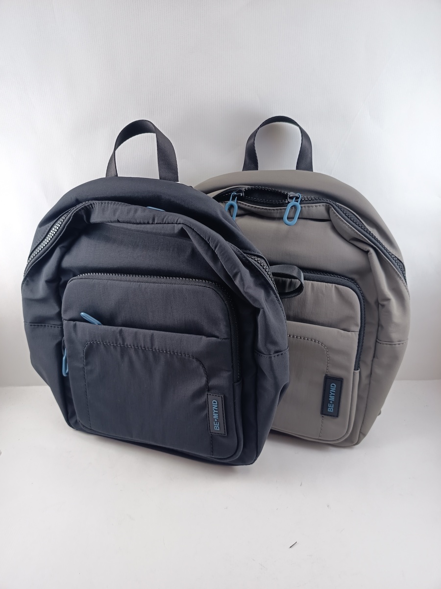 Mochila sintetica en varios colores y cierres de cremallera con varios departamentos interiores y exteriores.