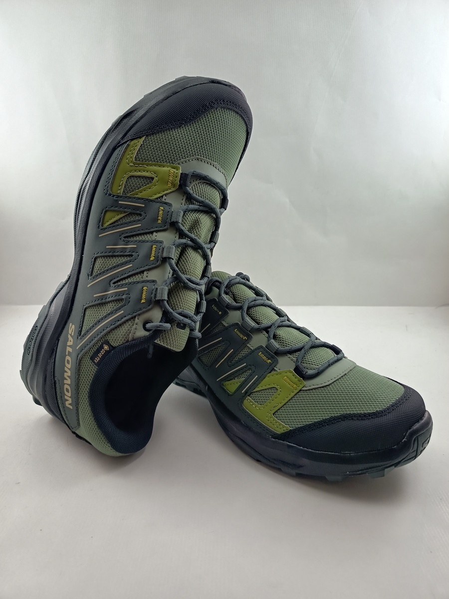Deportivo gore-tex sintetico verde con cierre de cordon, forro y plantilla textil, detalle de suela en negro.