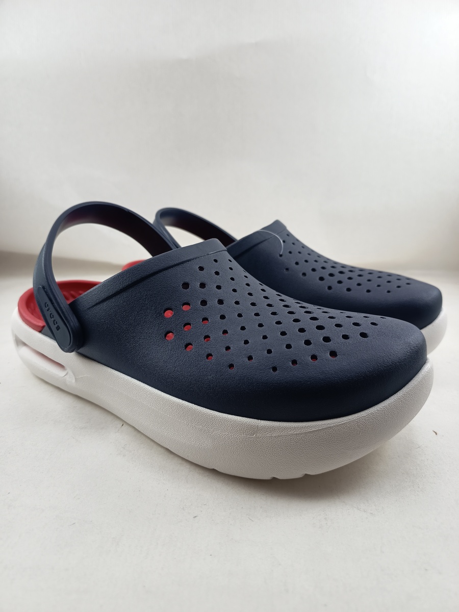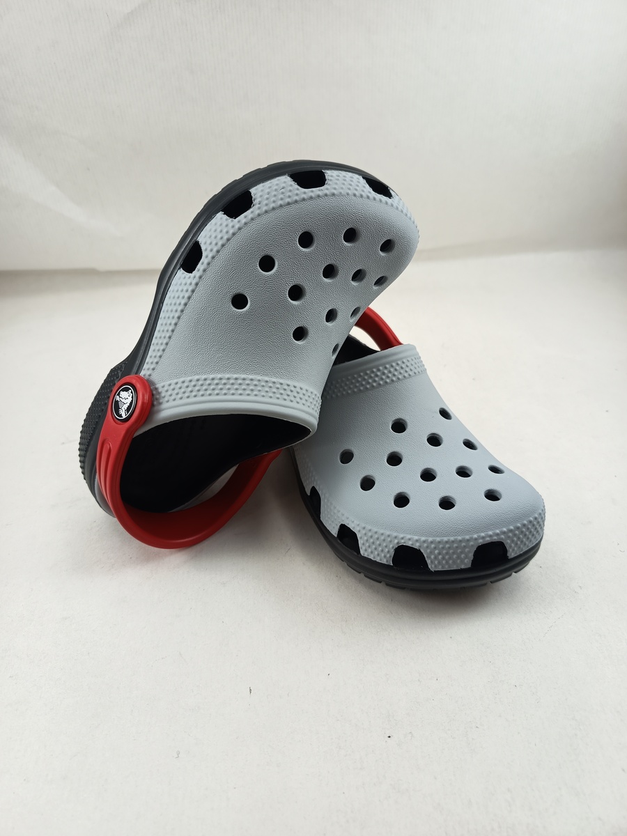 Croc sintetico multicolor sin cierres y tira trasera, suela de goma, modelo retro sport.