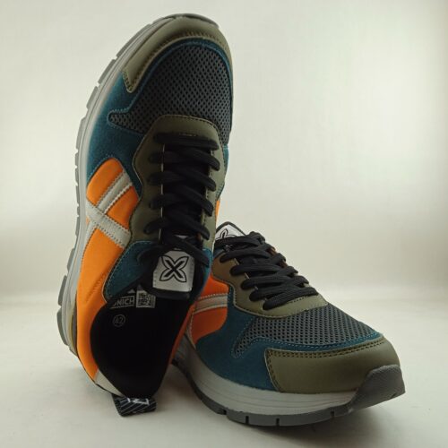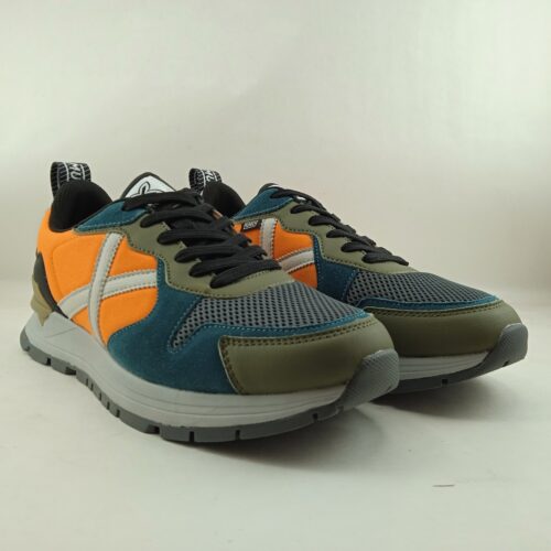 • Semi-sport de piel azul y naranja con cierre de cordon, Munich mod. 8831006
