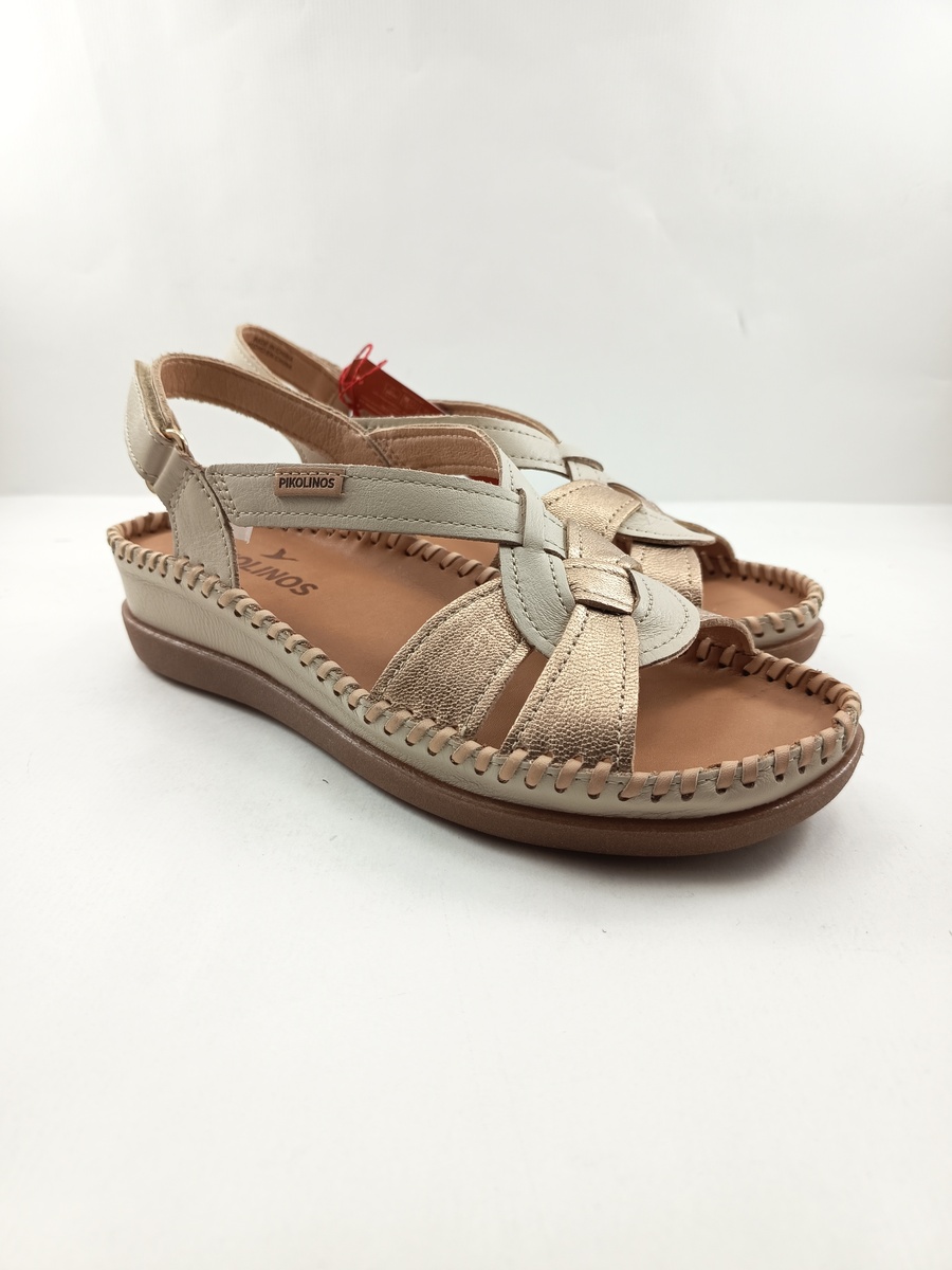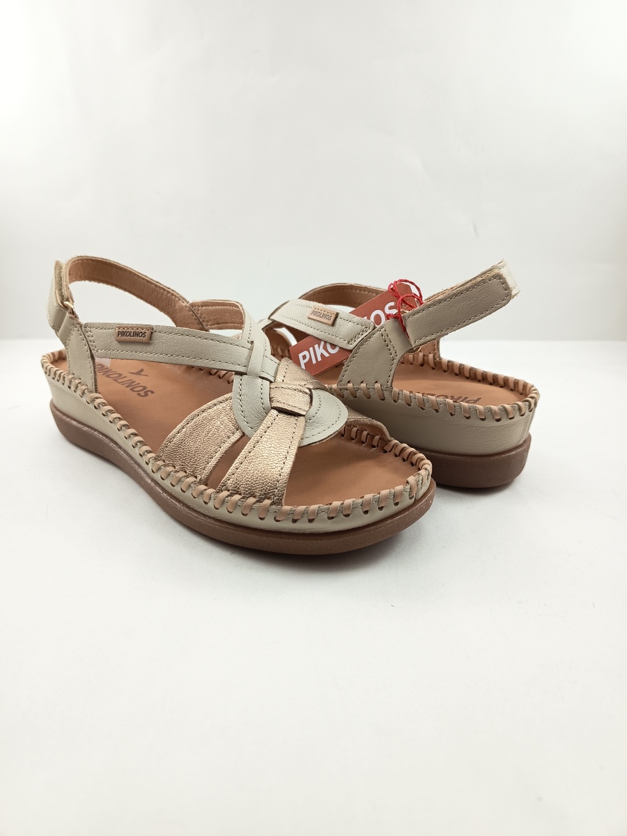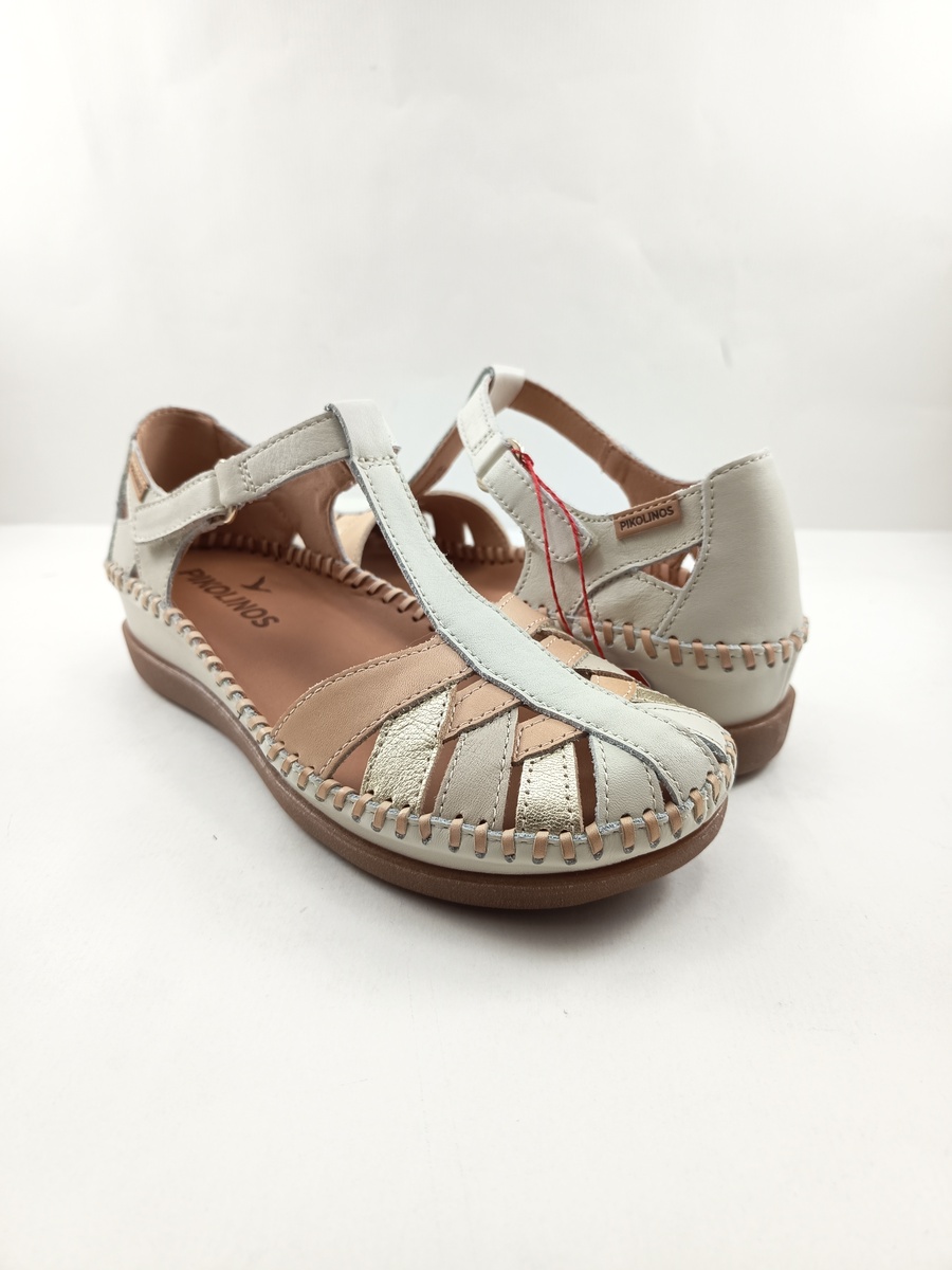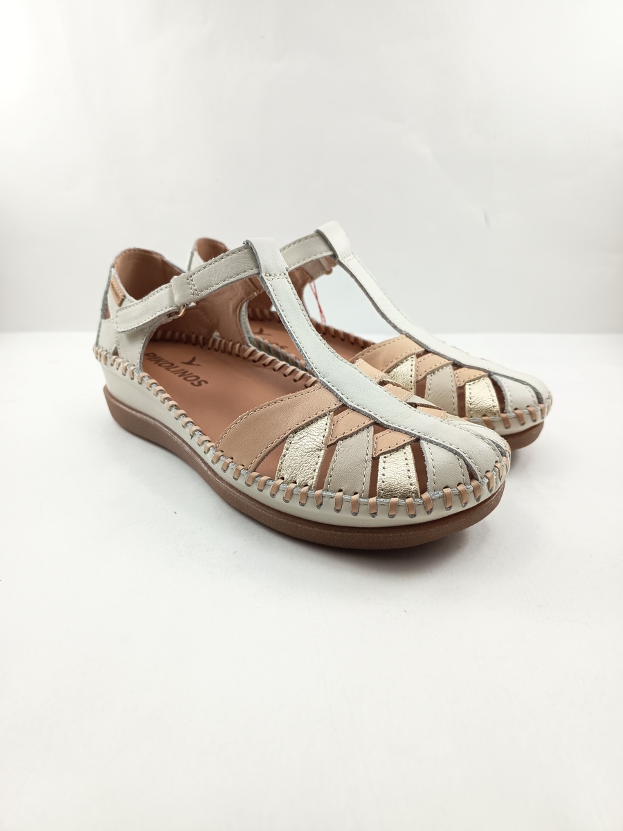 • Sandalia de piel crema con cierre de velcro, Pikolinos mod. 1839C1