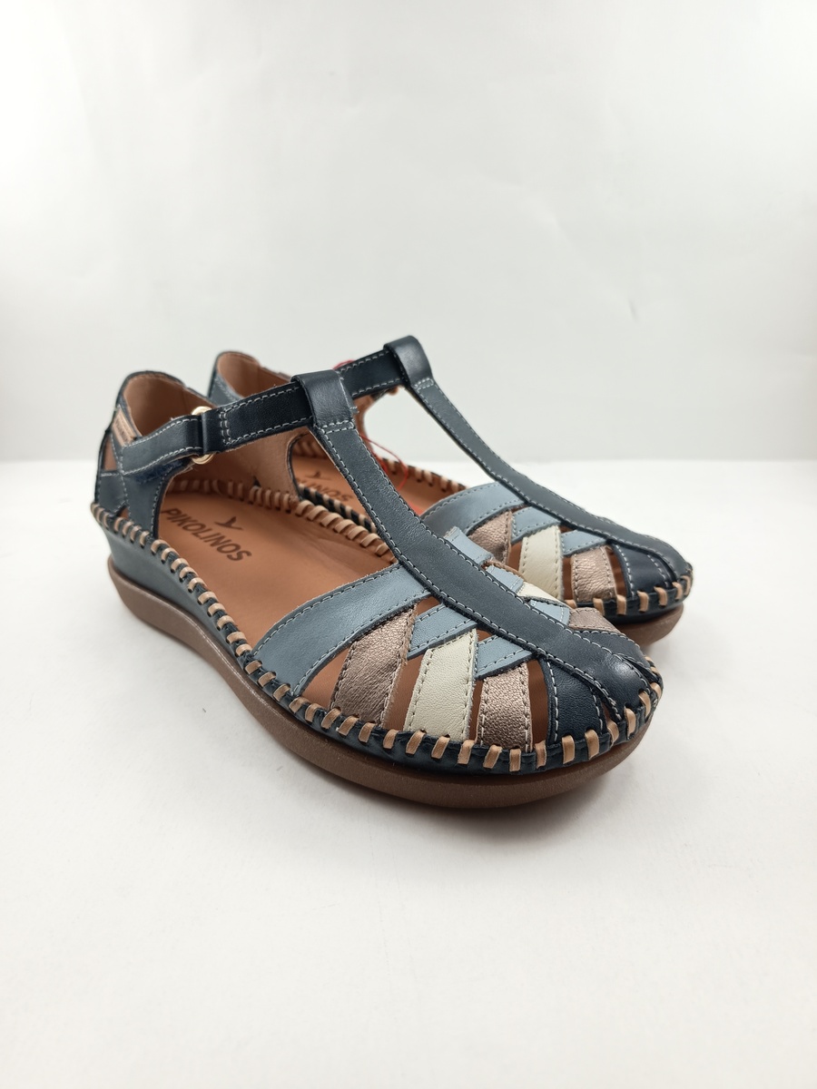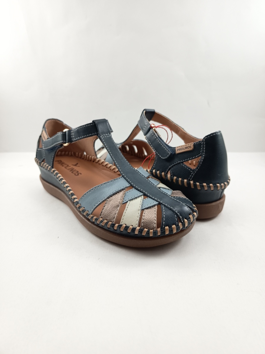 • Sandalia de cortes en piel azul con cierre de velcro, Pikolinos mod. 0705c1