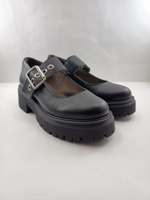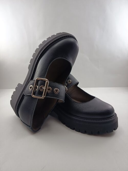 • Zapato de sport de piel negra con cierre de hebilla, Art mod. 1373