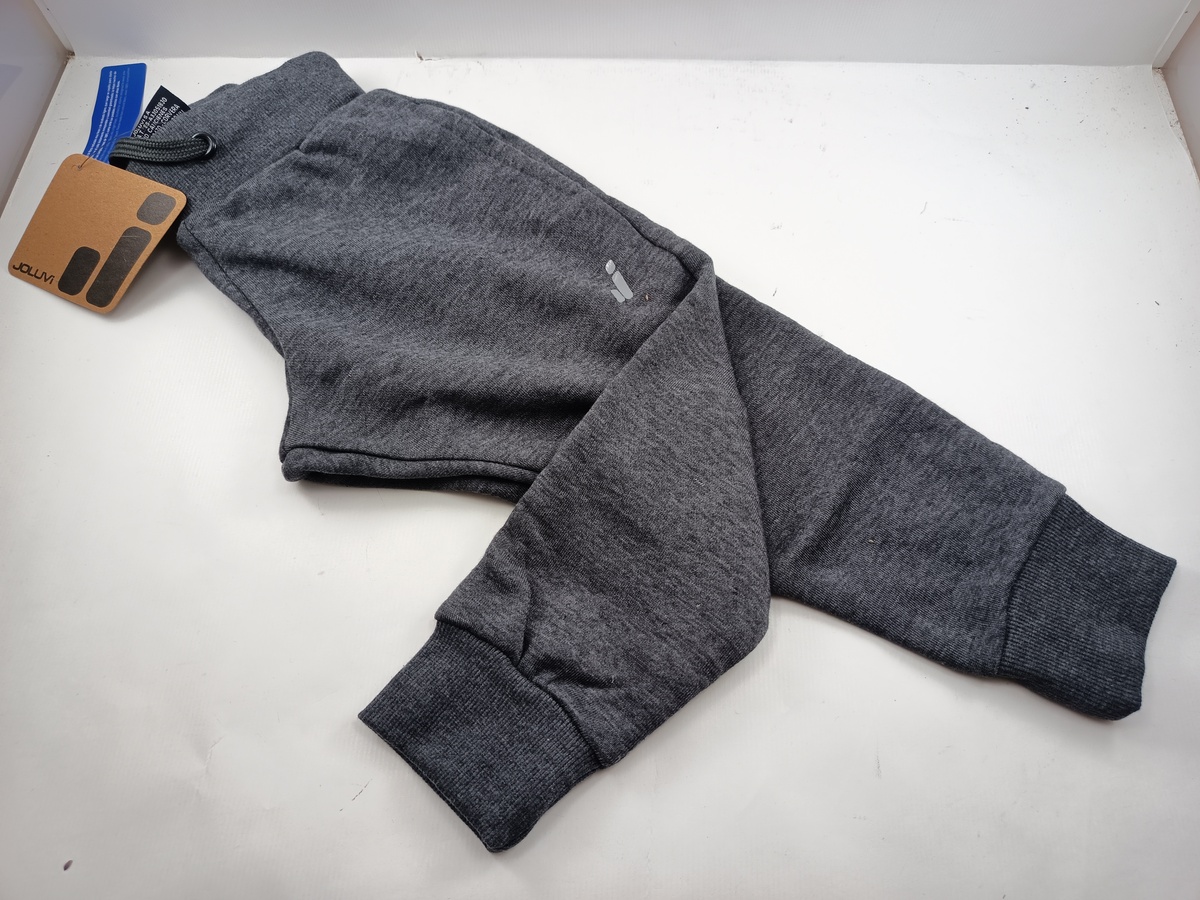 Pantalon largo sintetico gris con cierre de cordon en cintura y puno en tobillo.