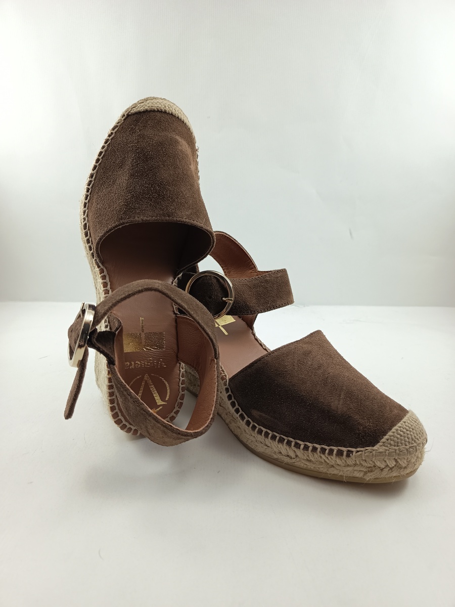 Alpargata de ante marron con cierre de hebilla, Viguera mod. 1922