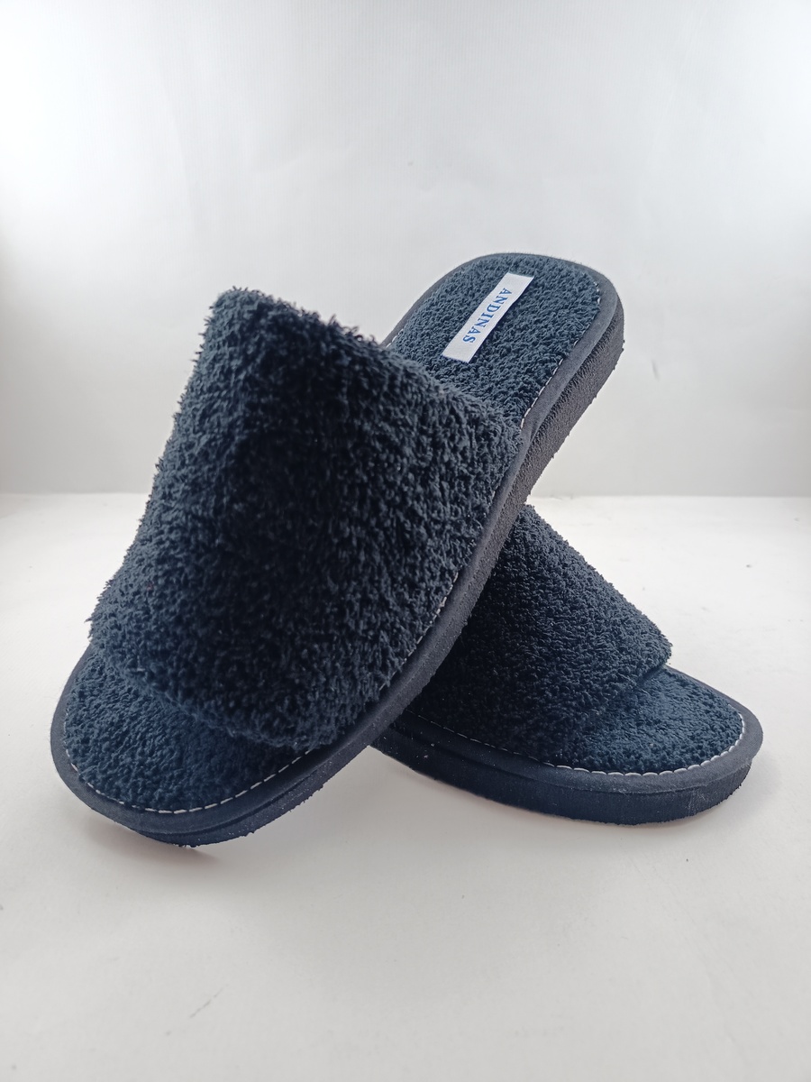 Alpargata de casa de rizo negro tipo chancla abierta de punta, Andinas mod. 550C