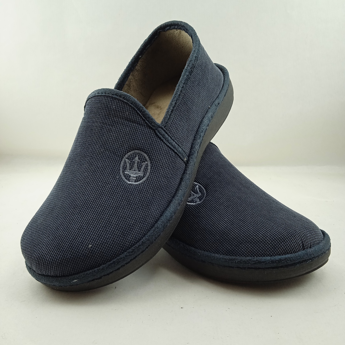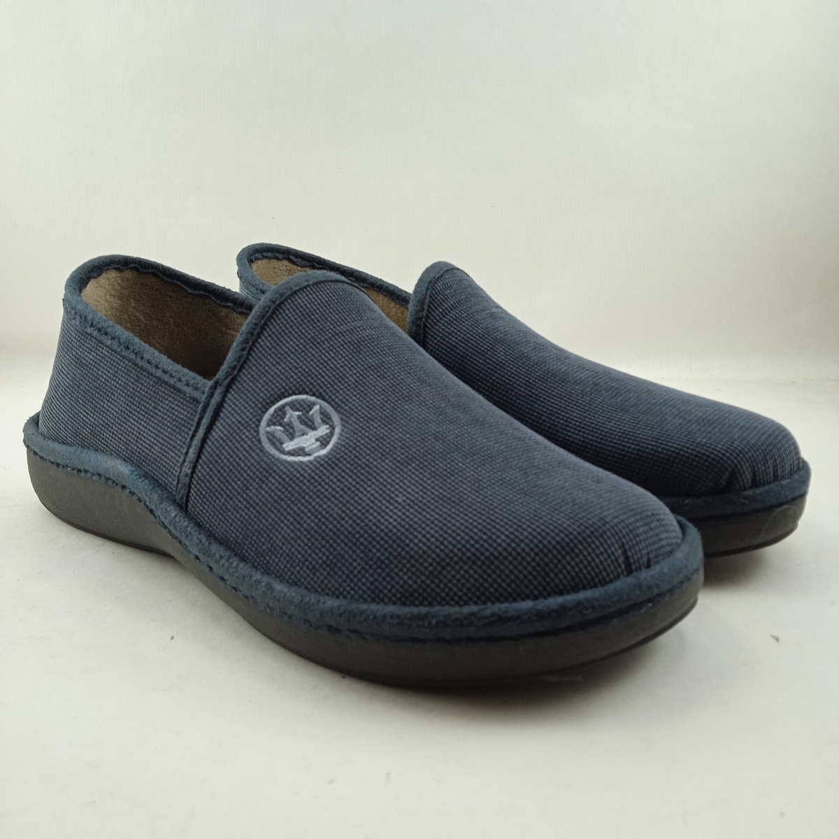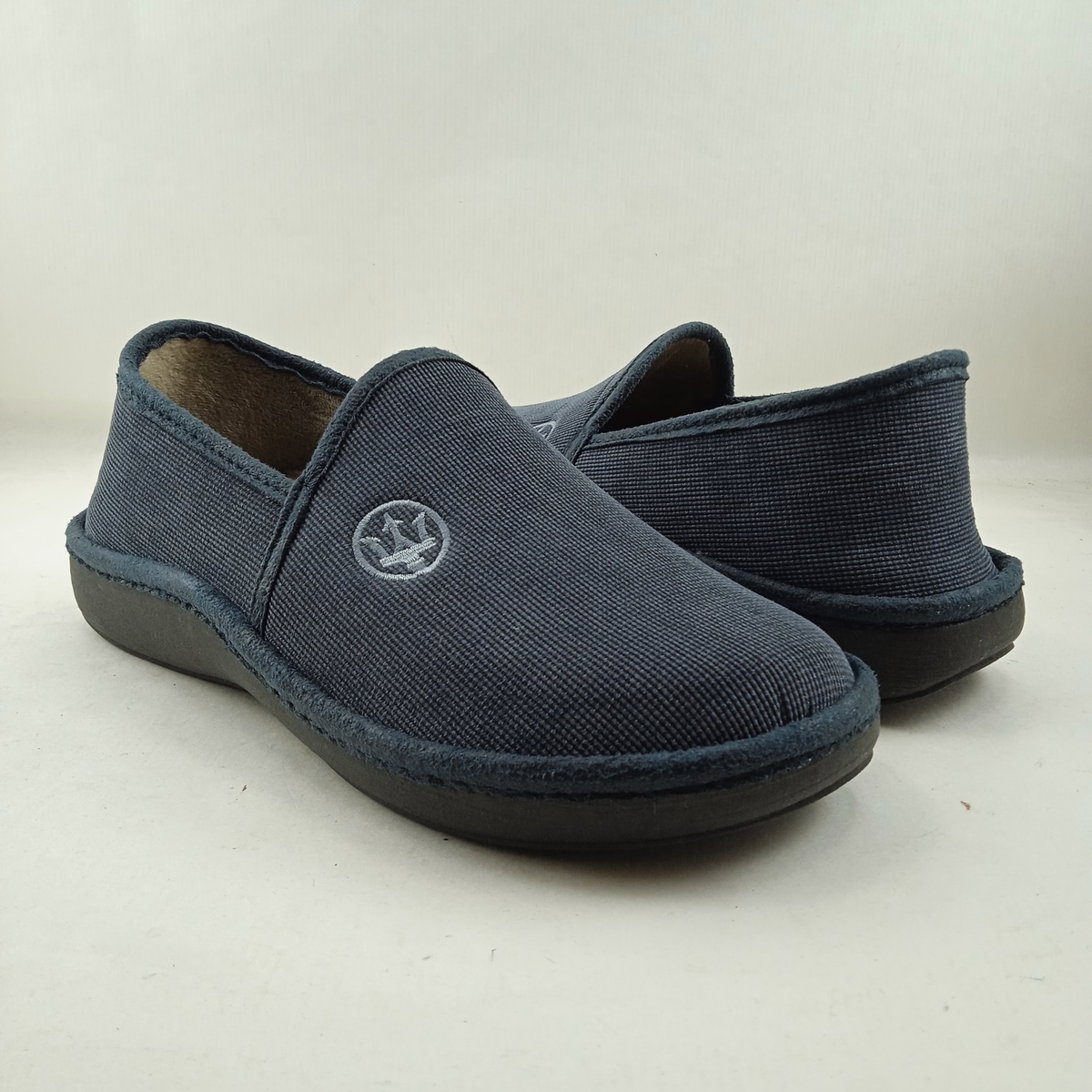Alpargata de casa gris cerrada con suela de goma, forro y plantilla de feltro.