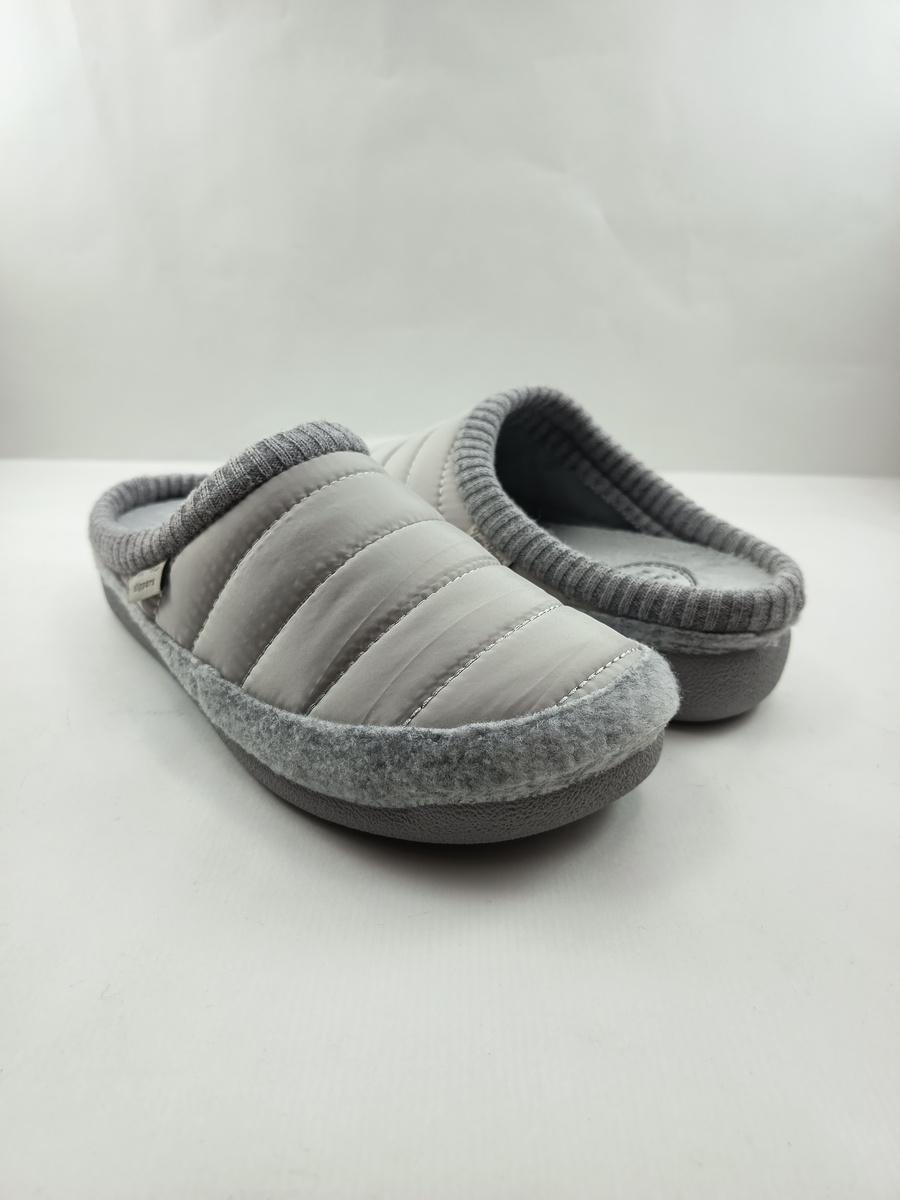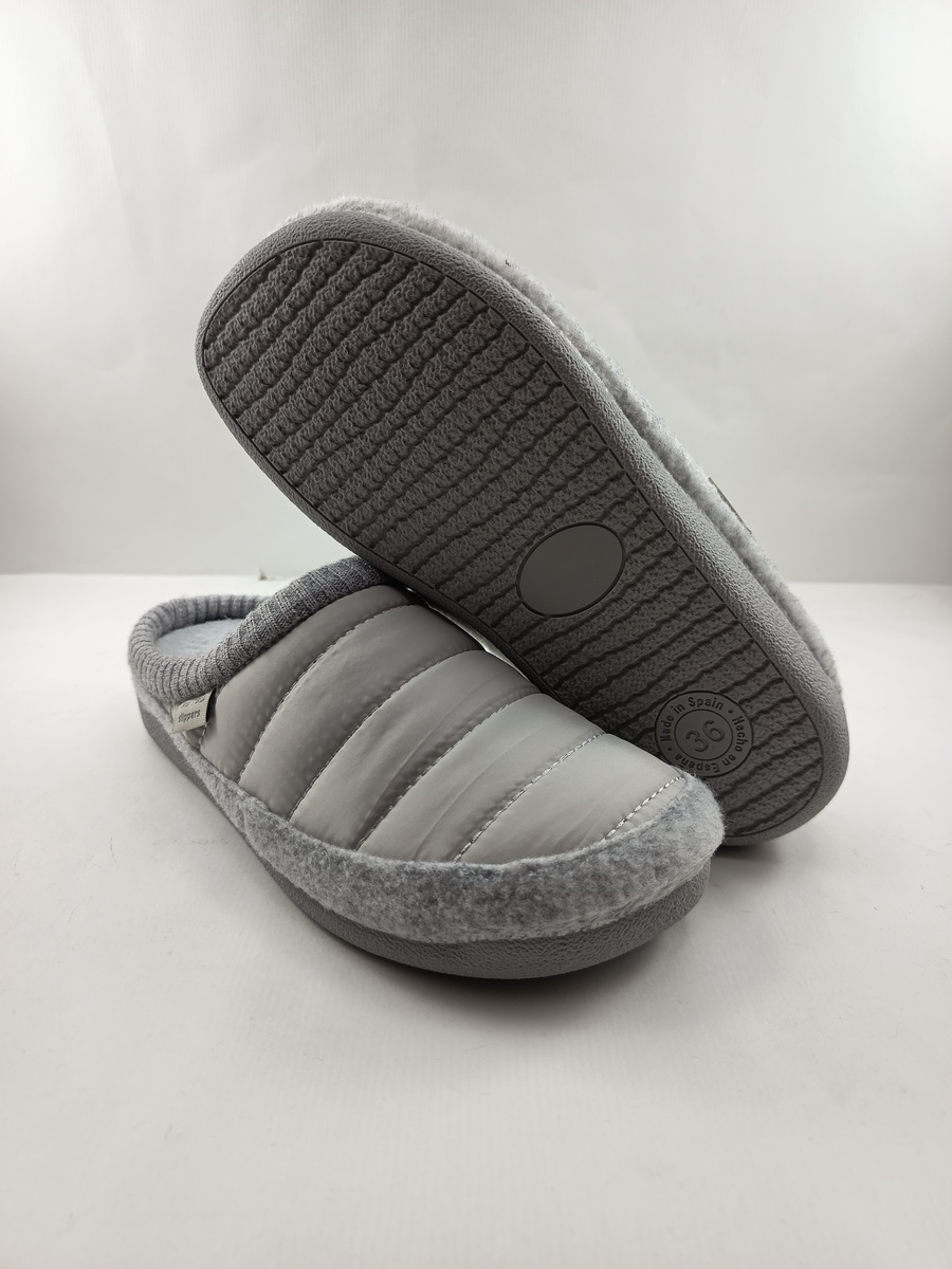 Alpargata de andar por casa en color gris perla, textil con suela de goma, tipo chancla.
