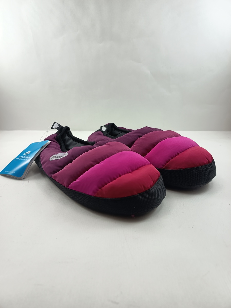 Alpargata de casa sintetica rosa sin cierres y suela de goma, forro y plantilla textil, comodas y ligeras.