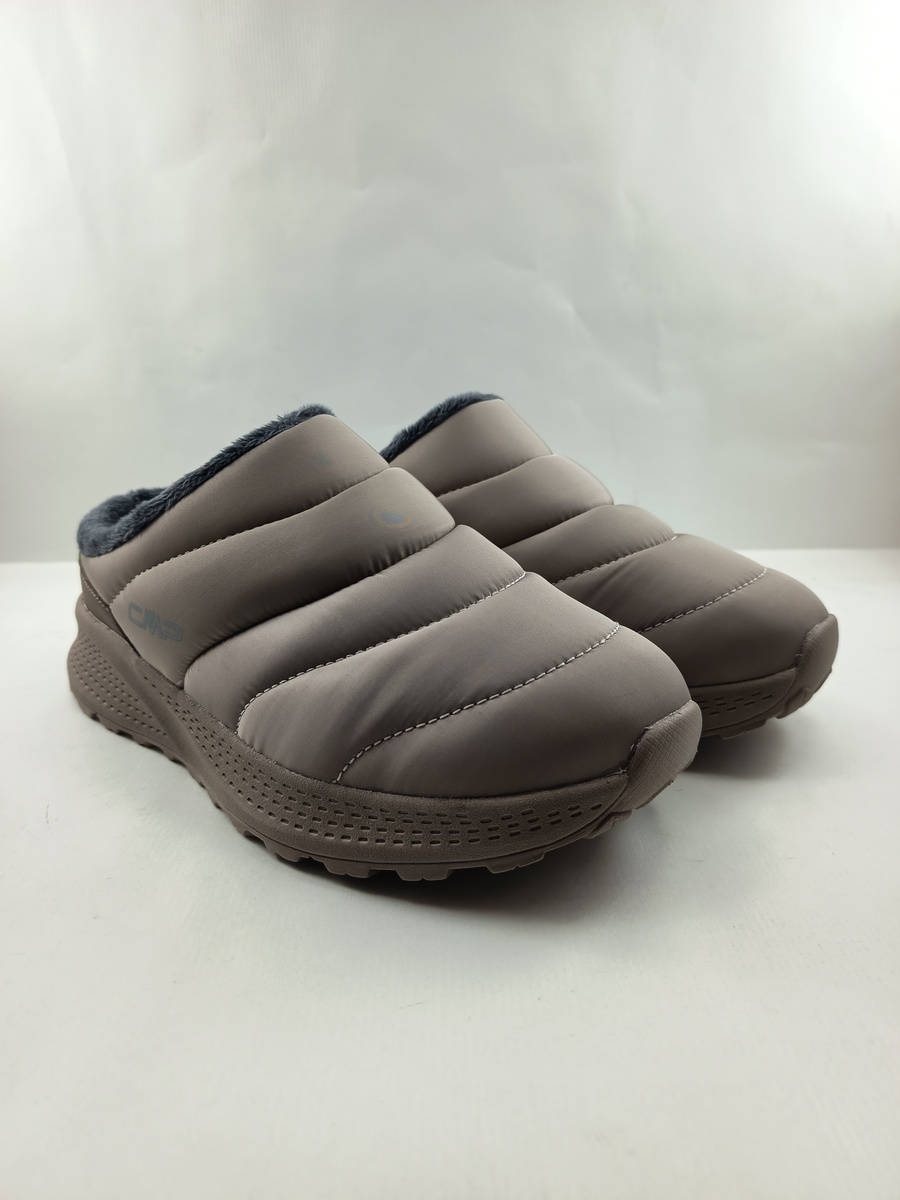 Alpargata de casa tipo chancla sin cierres y suela de goma, forro y plantilla textil.