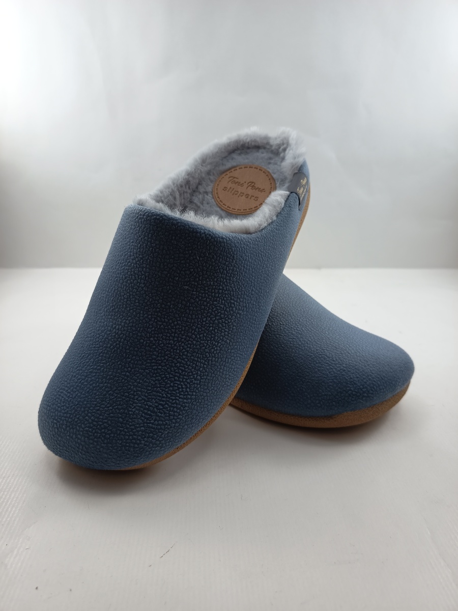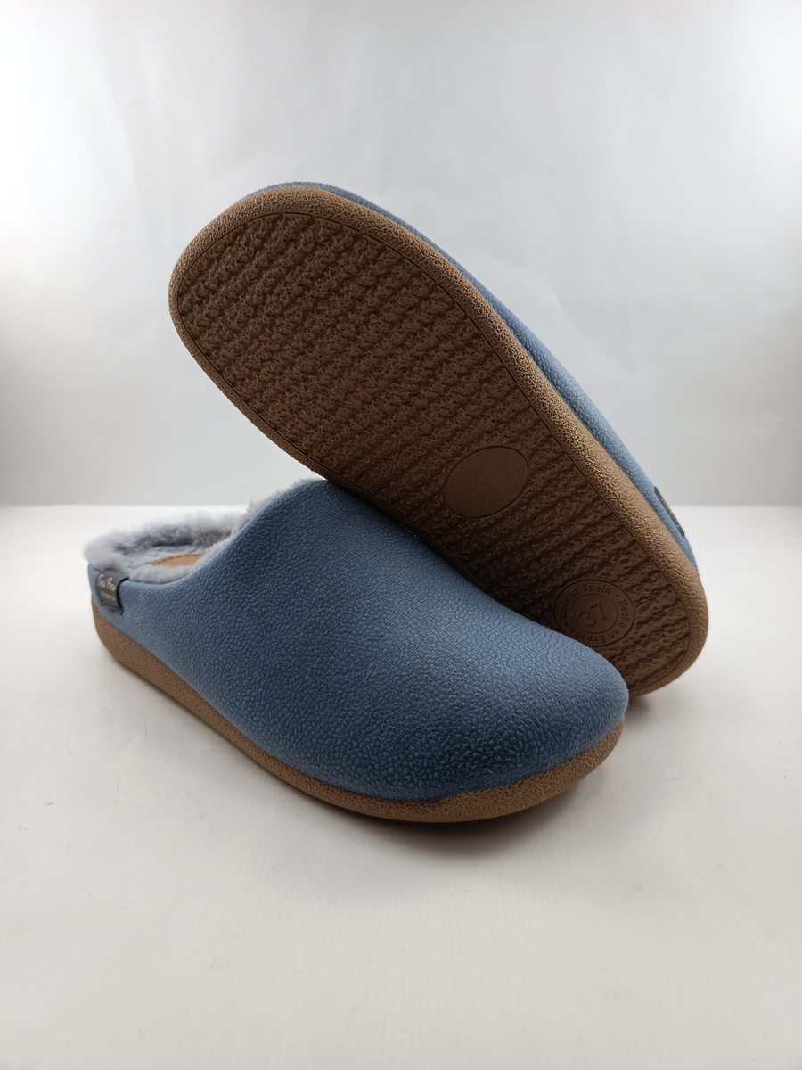 Alpargata de casa tipo chancla sin cierres y suela de goma, forro y plantilla peluda.