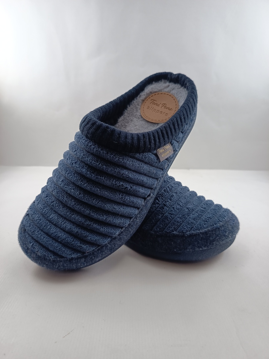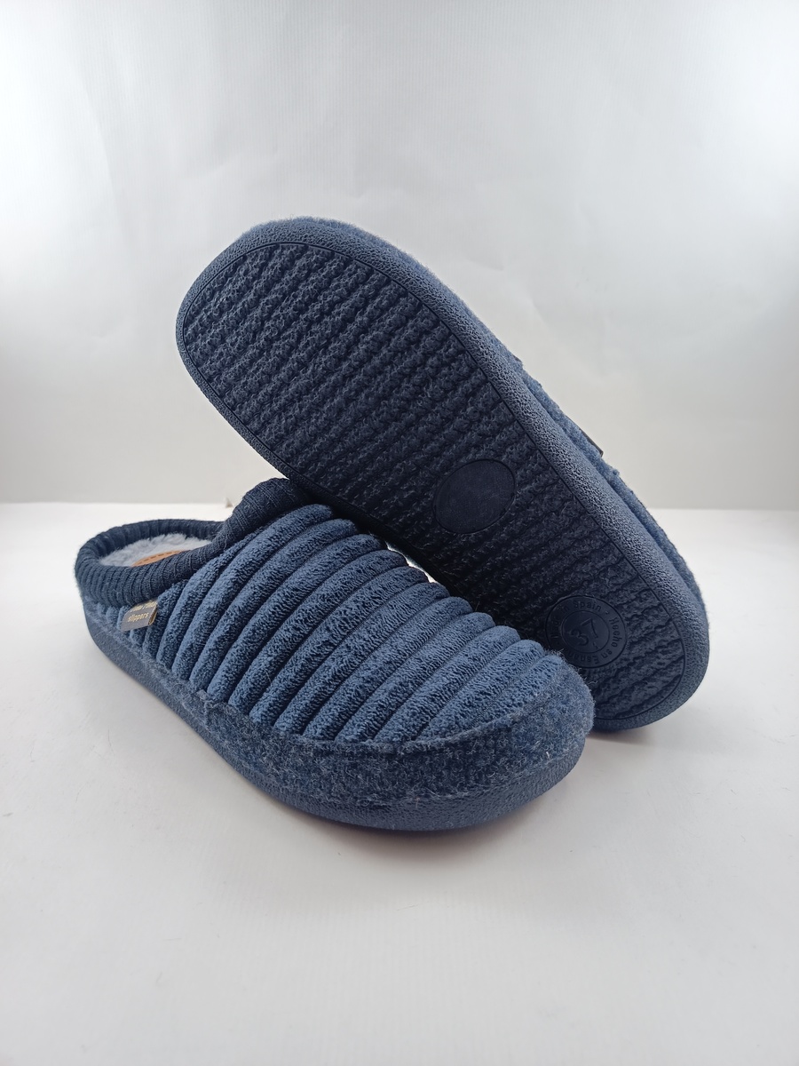 Alpargata de casa tipo chancla sintetica azul sin cierres y suela de goma, forro y plantilla textil.