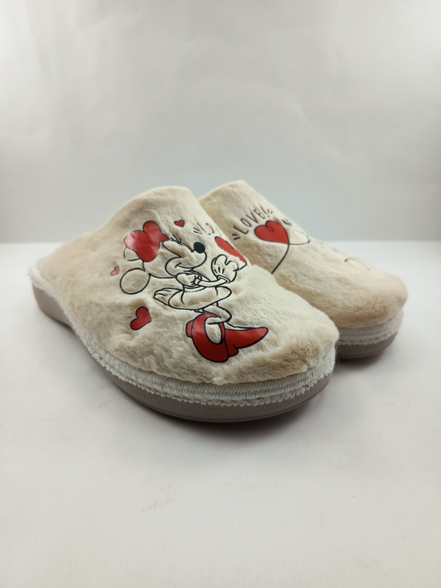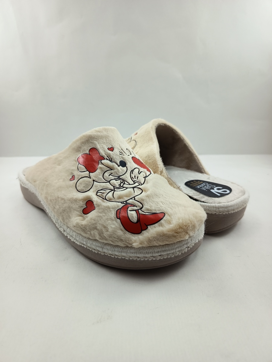 Alpargata de casa tipo chancla sintetica crema sin cierres y suela de goma, forro y plantilla textil, detalle de dibujo en empeine.