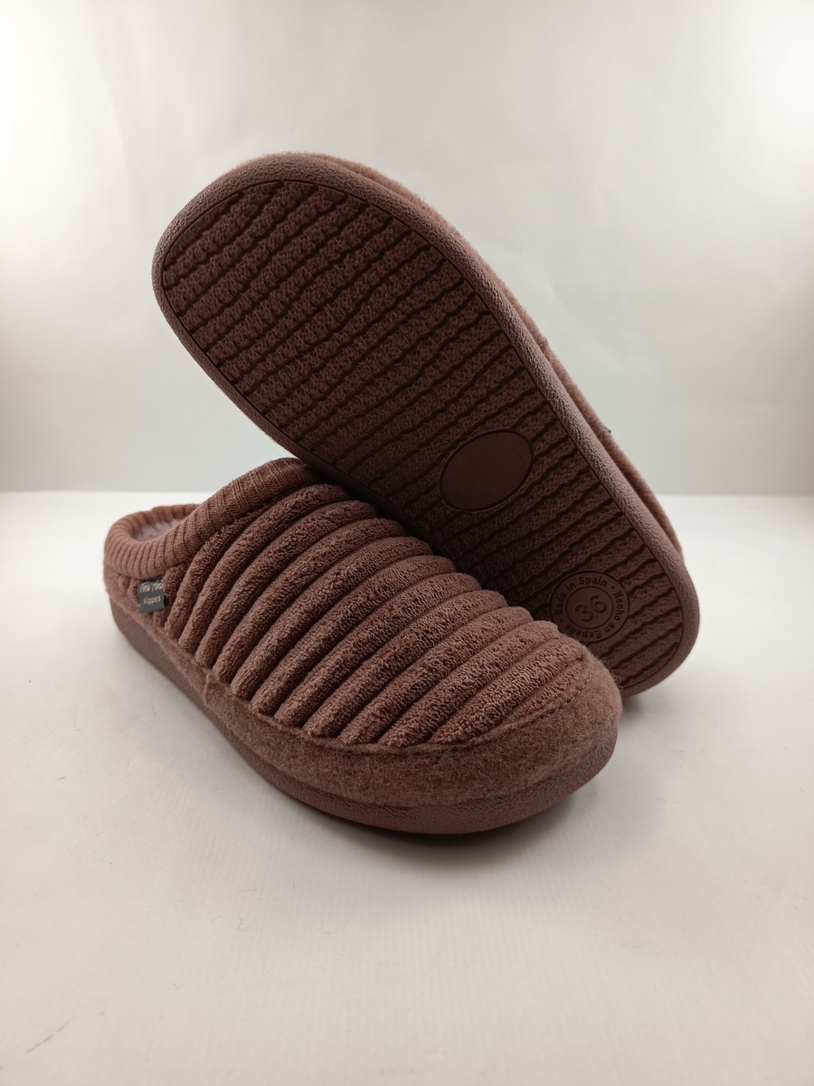 Alpargata de casa tipo chancla sintetica magenta sin cierres y suela de goma, forro y plantilla textil.