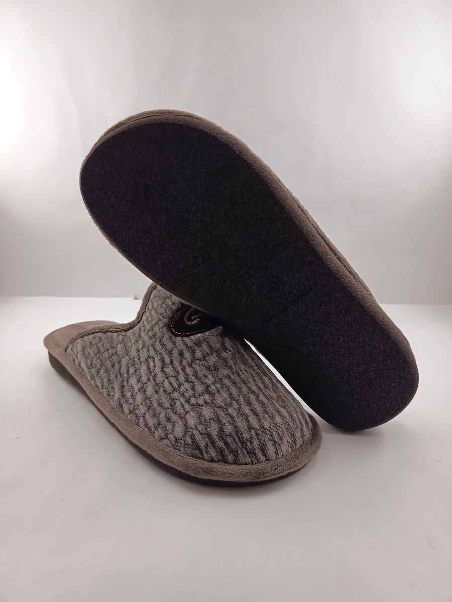 Alpargata de casa tipo chancla sintetica marron sin cierres y suela de goma, forro y plantilla textil.