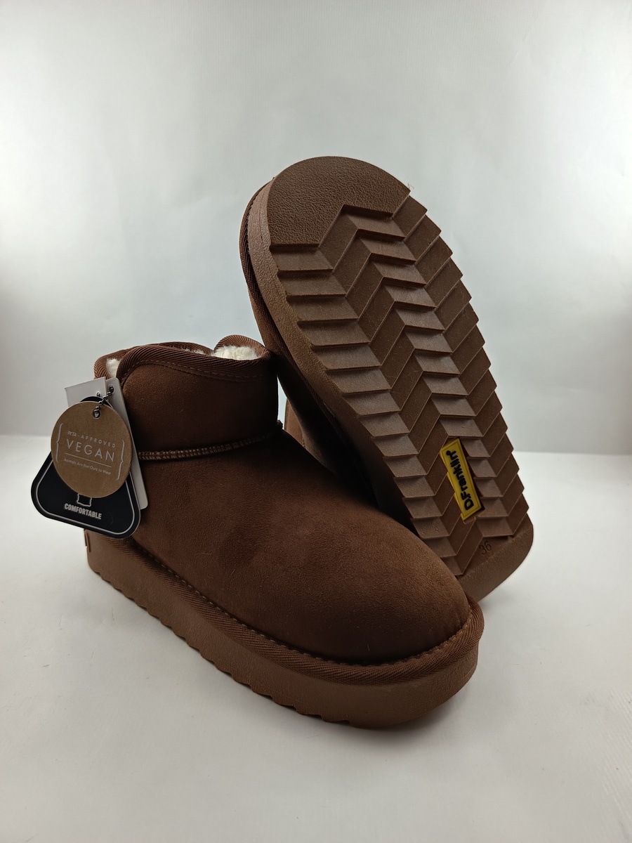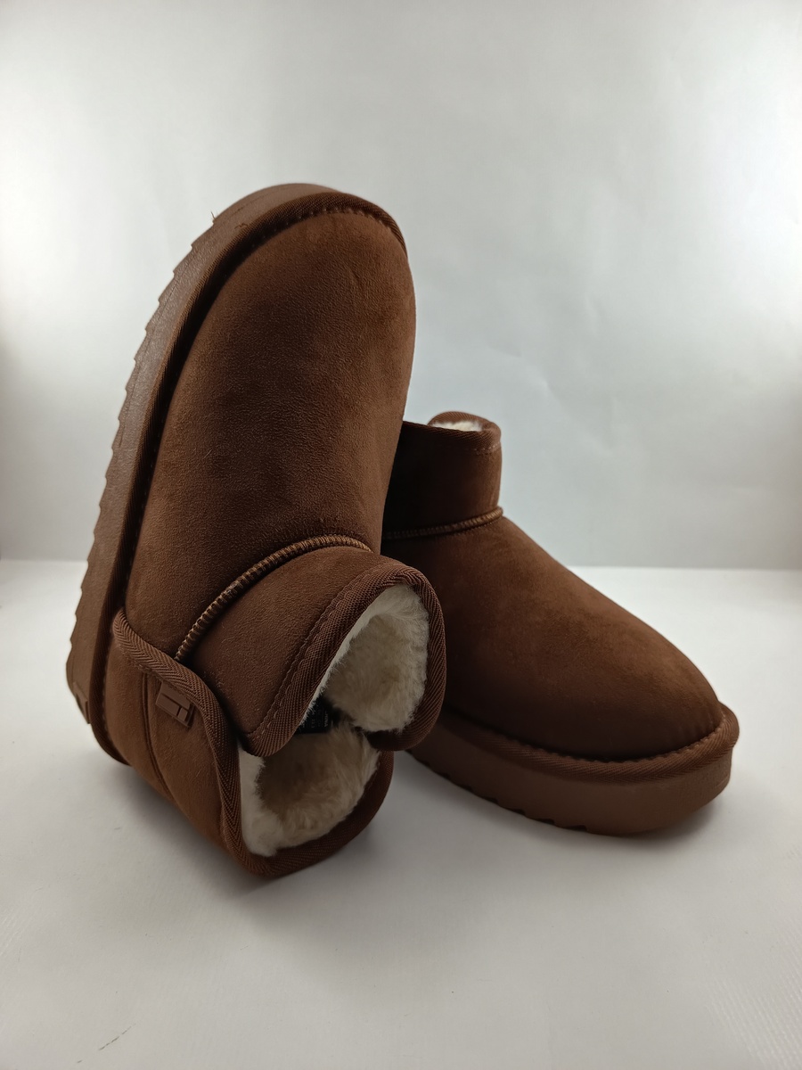 Bota australiana de ante cuero sin cierres y suela de goma, forro y plantilla peludos.