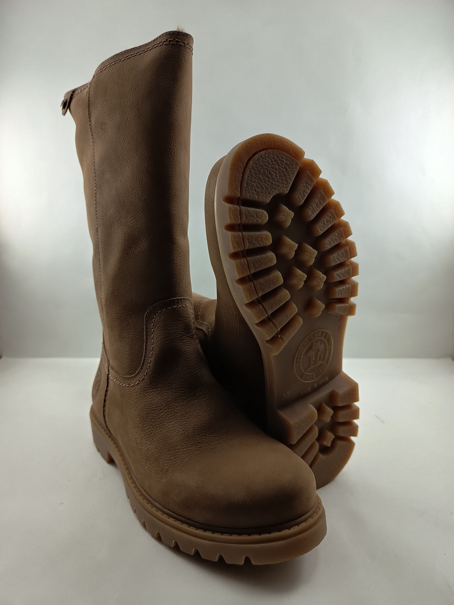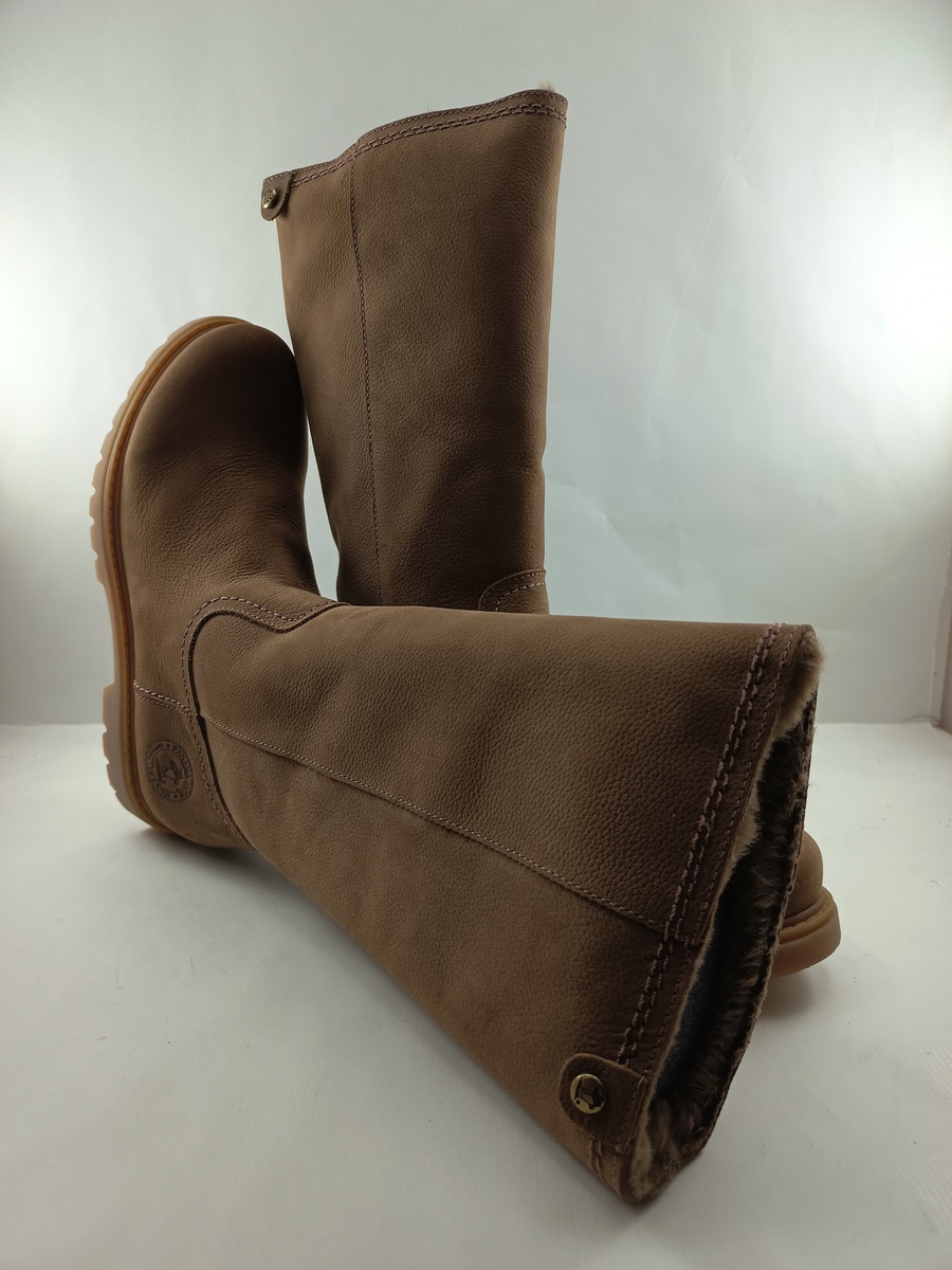 Bota de nobuck camel sin cierres y suela de goma, forro y plantilla peludo.