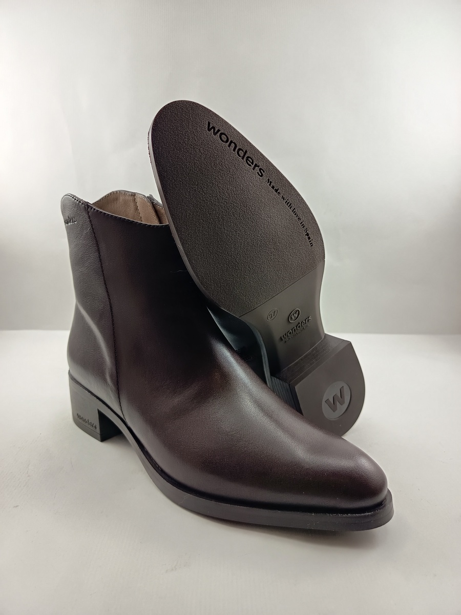 Bota de piel marron con cierre de cremallera, Wonders mod. D-1801