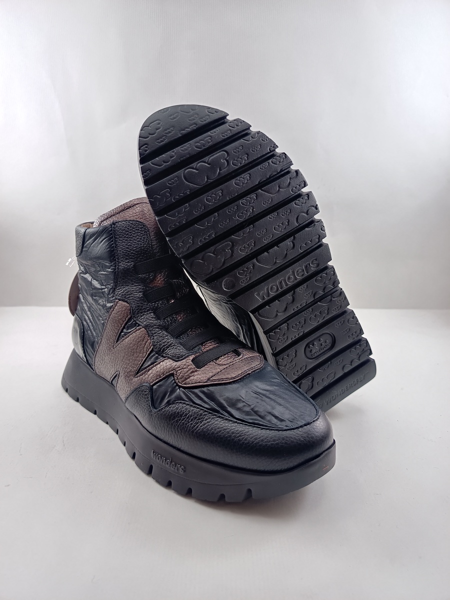 Bota de piel negra con cierre de cordon elastico, Wonders mod. A-2493