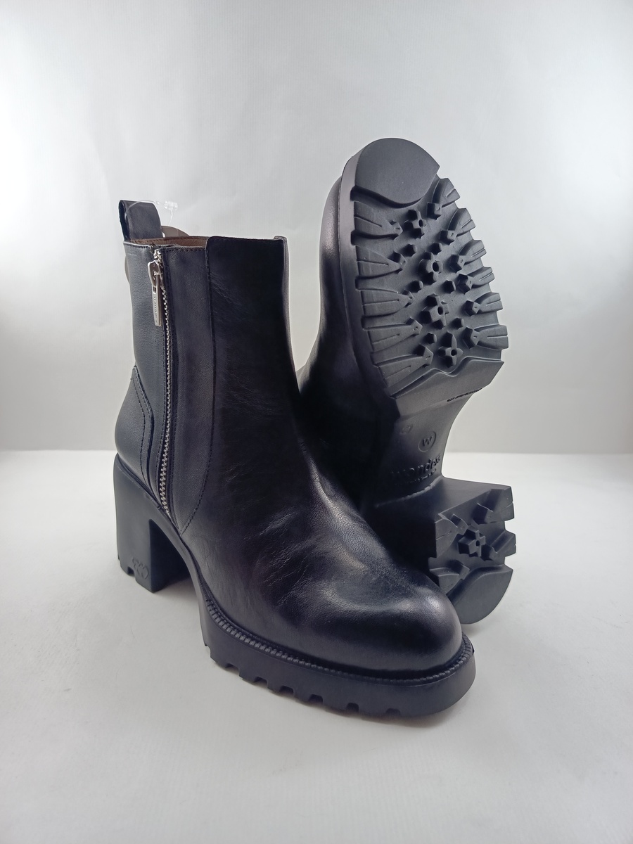 Bota de piel negra con cierre de cremallera, Wonders mod. G-7206