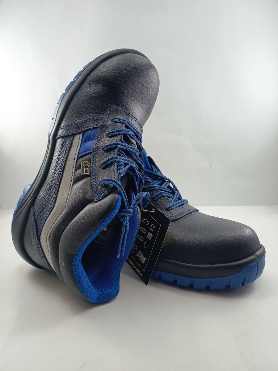 Bota de piel negra con detalle en azul, cierre de cordón Fal seguridad mod. Ebro